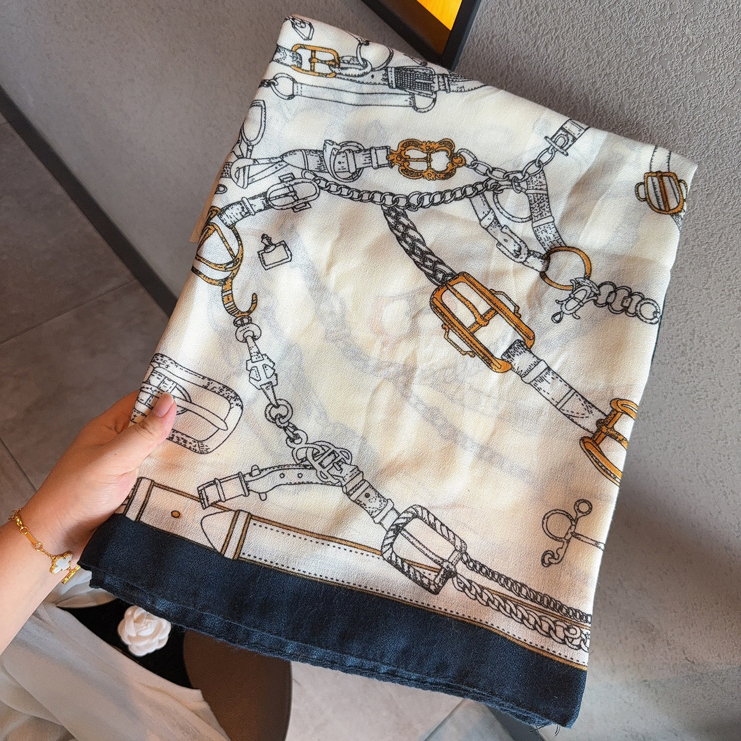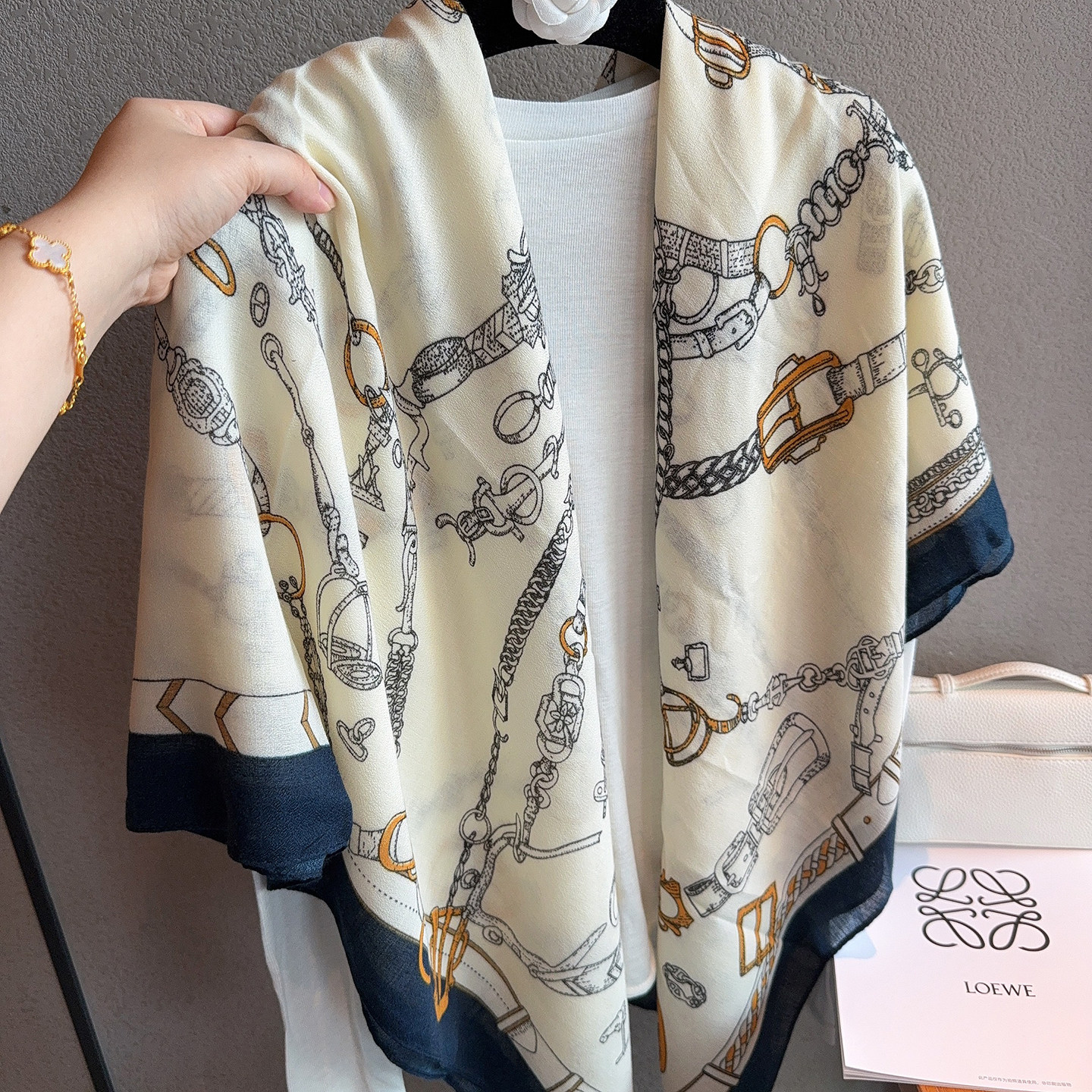 📚 海军风锁链轻奢棉麻围巾女130大方巾旅游拍照防晒空调房披肩春秋