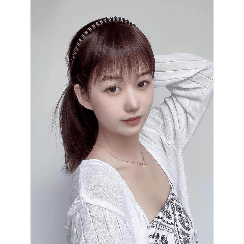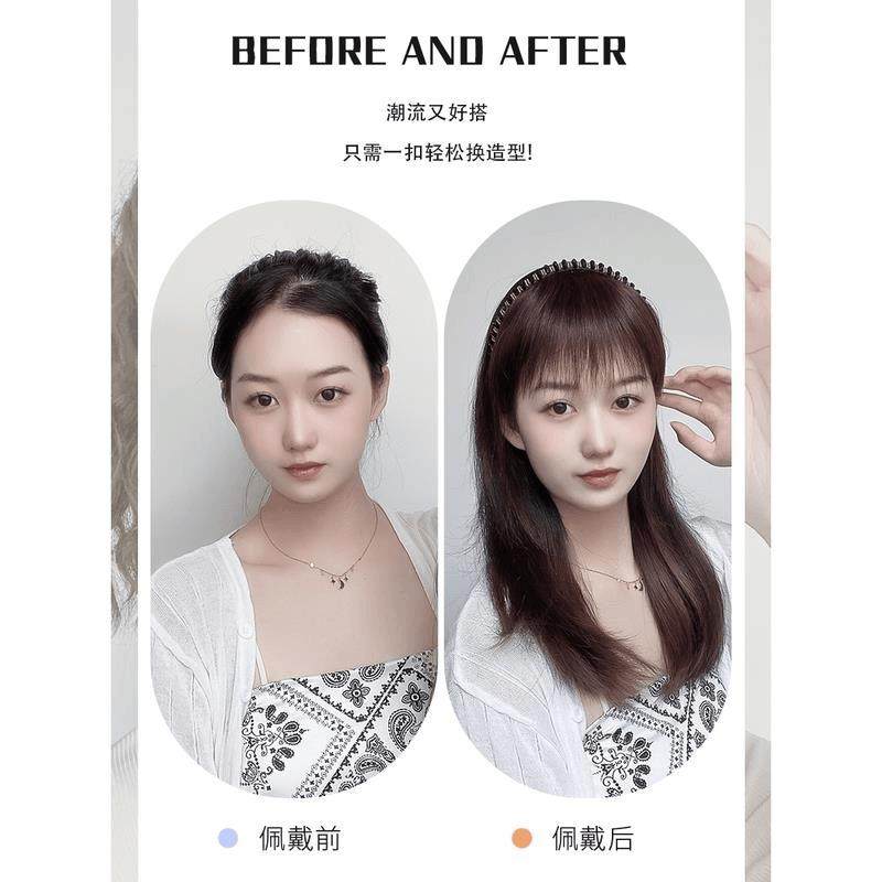 📚 真发辫子发箍刘海一体假发女发遮白发增发量前额刘海片真人发丝