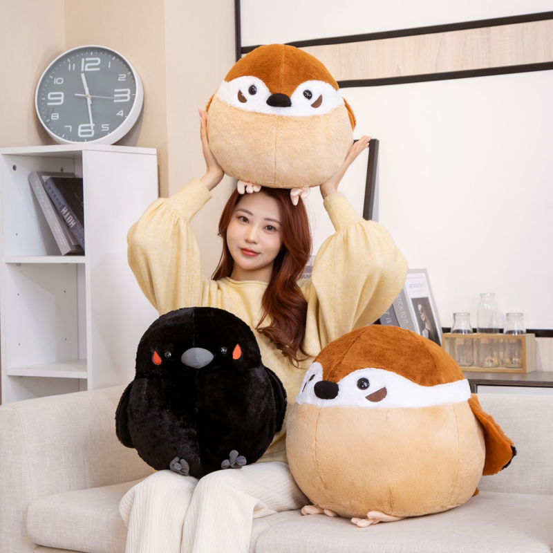 📚 仿真麻雀公仔圆滚滚球形乌鸦肥啾抱枕毛绒玩具鬼灭之刃我善逸玩偶