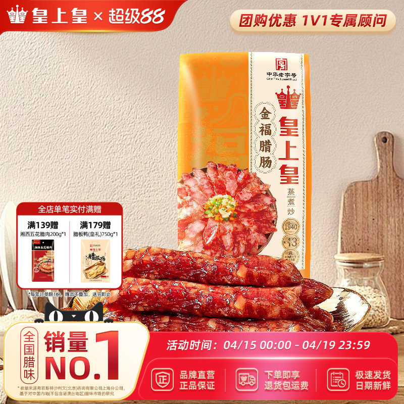 47¥ CZ005 3hoB5TXmV9K¥ https://m.tb.cn/h.iotR9aO 皇上皇金福腊肠300g广式风味香肠广东广州年礼送礼腊味 --------------------- 【原售价】59元 【现售价】39.9元。