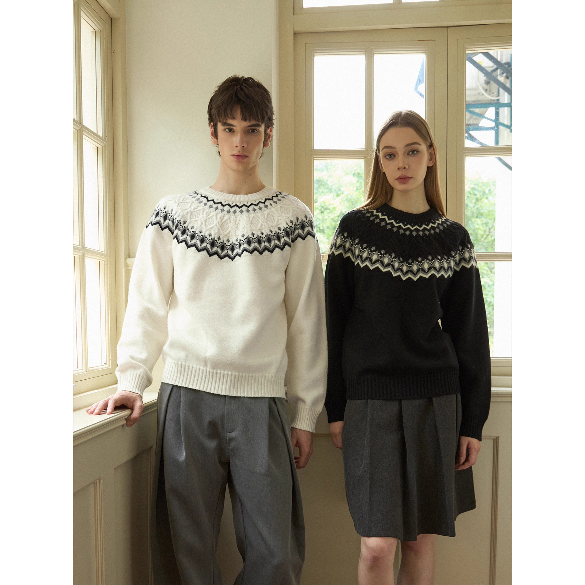 📚 【JMWH】Stay the Night 费尔岛绞花针织圆领舒适透气插肩毛衣
