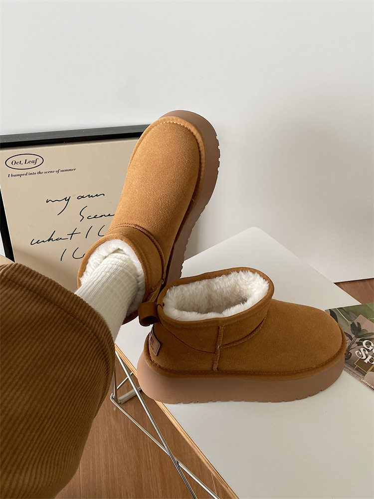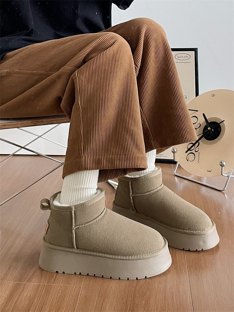 📚 2025冬季新款雪地靴女韩版百搭圆头复古增高棉鞋ins厚底加绒短靴