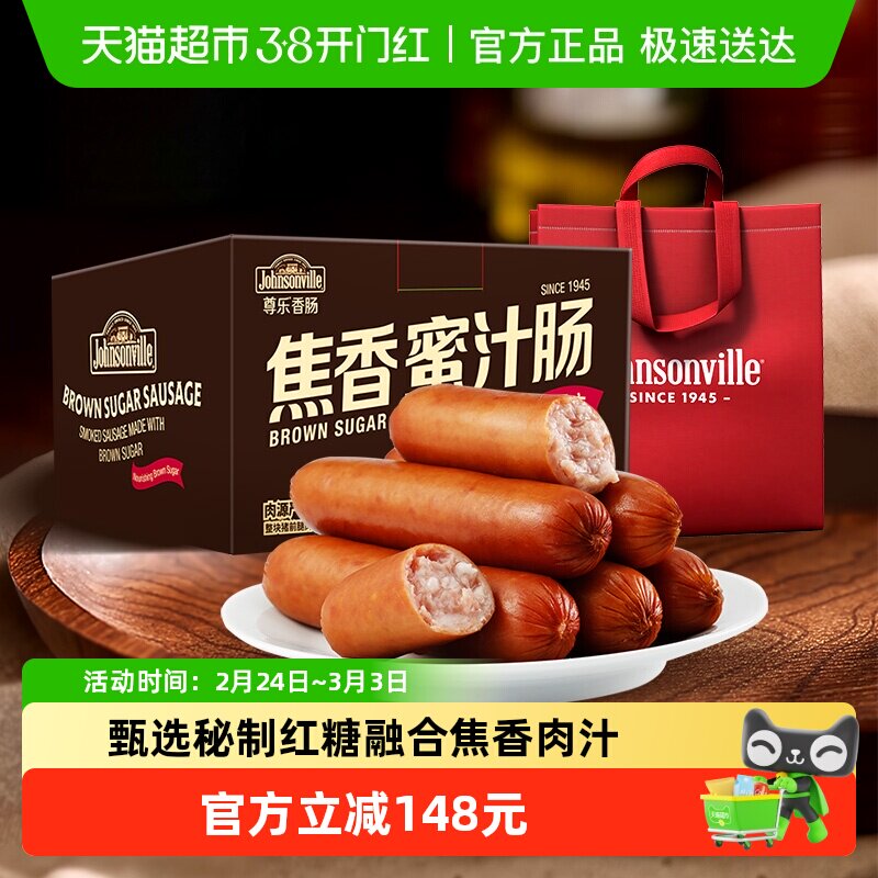 📚 【年货礼盒】尊乐焦香蜜汁爆汁纯肉烤肠礼盒1950g家庭囤货装早餐