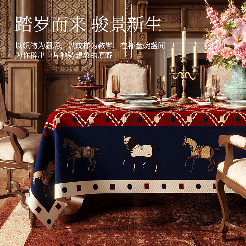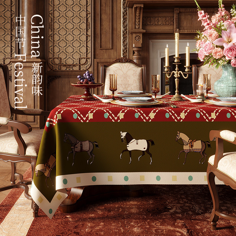 📚 复古桌布新年马年氛围感装饰餐桌布防水防烫免洗长方形茶几遮盖布