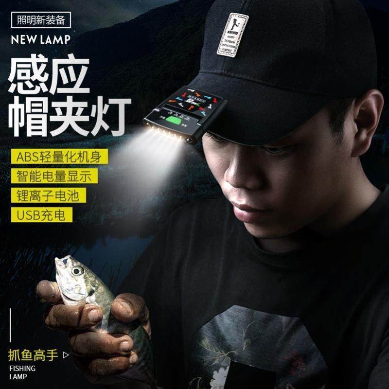 📚 探露感应头灯钓鱼夹帽灯帽檐头戴式夜钓可充电强光超亮LED防水灯