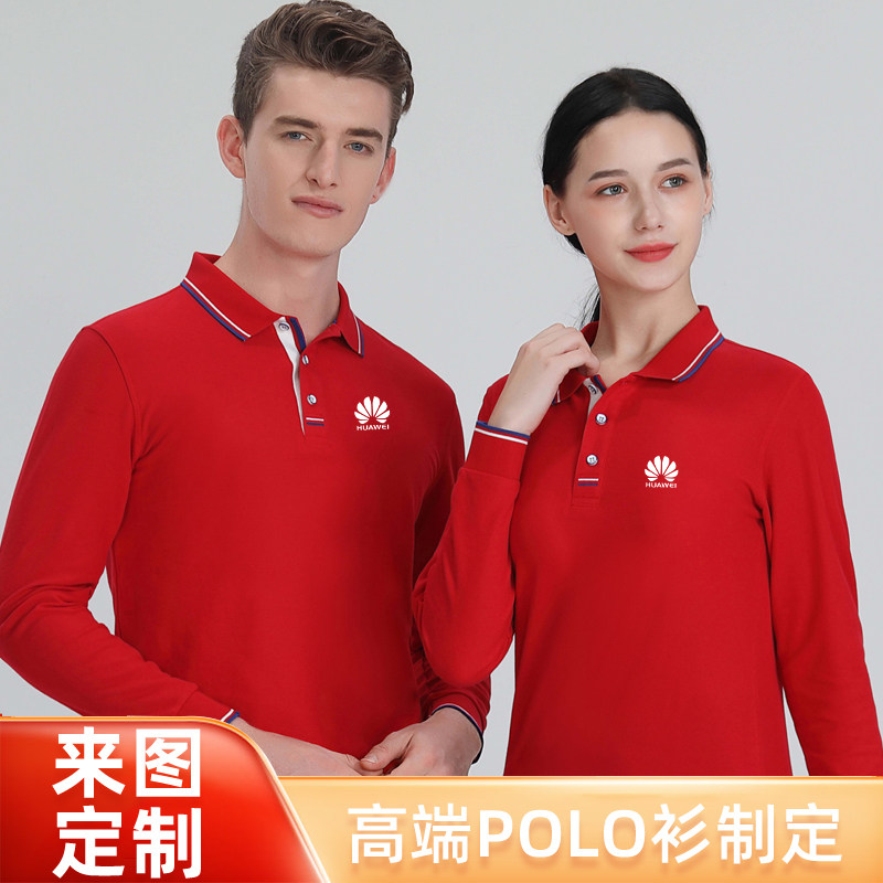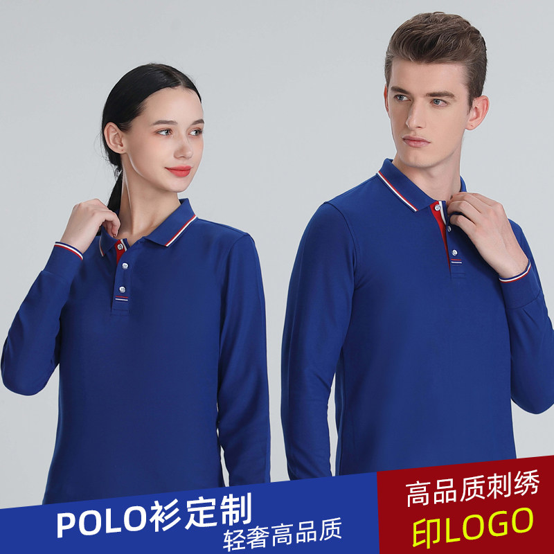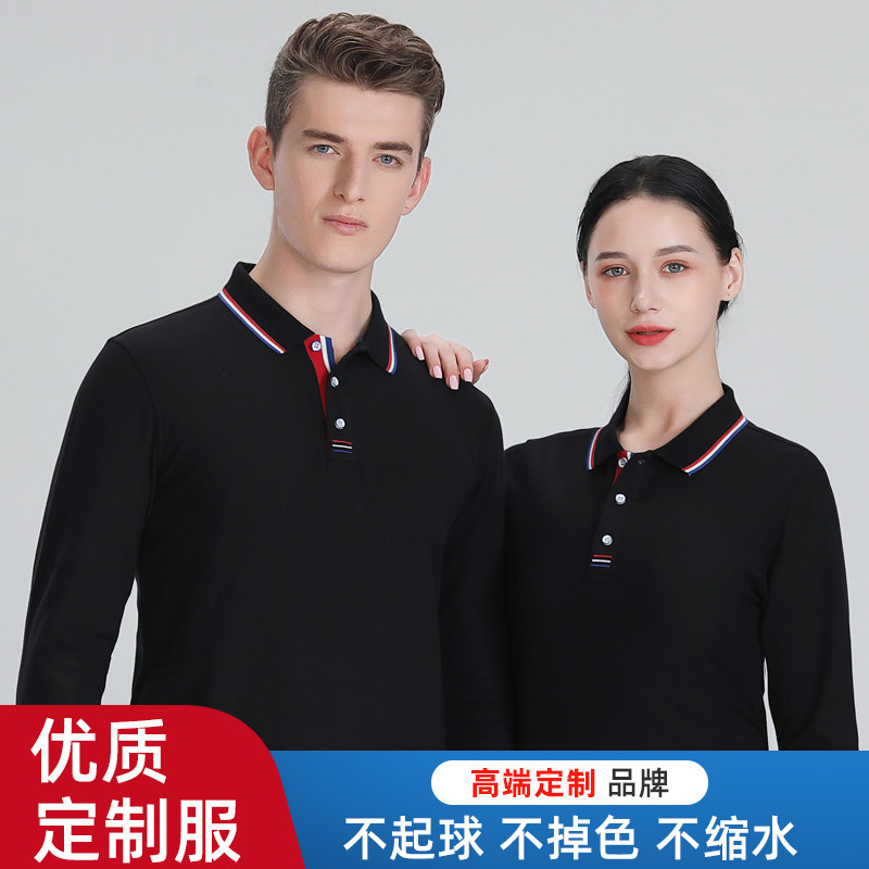 📚 秋冬款长袖翻领T恤宽松大码广告文化POLO衫刺绣工作服定制印LOGO