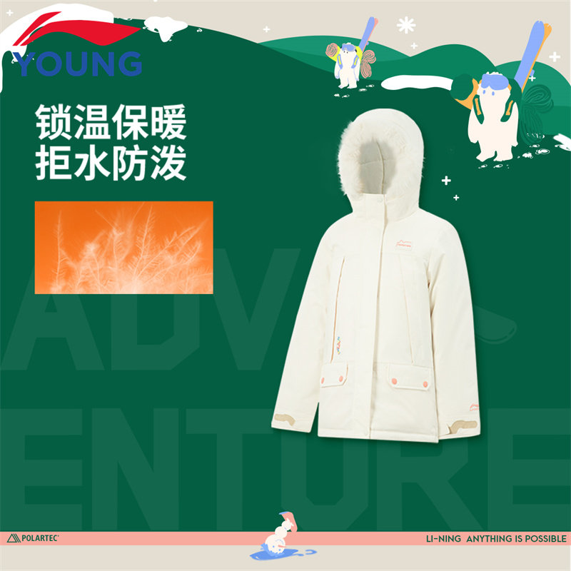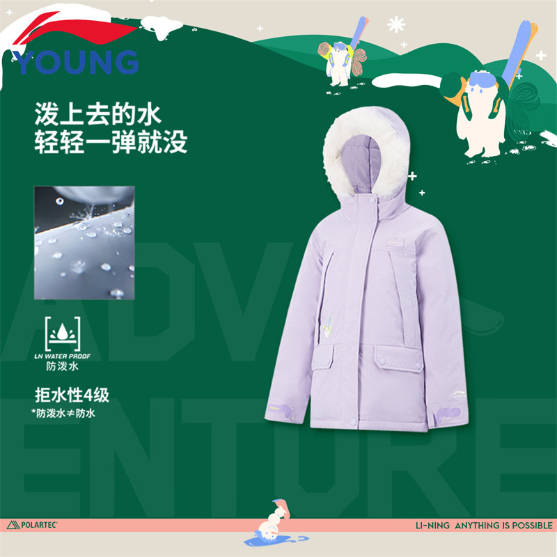📚 李宁女童短款连帽羽绒服冬季大童新款保暖户外防泼水宽松鸭绒外套