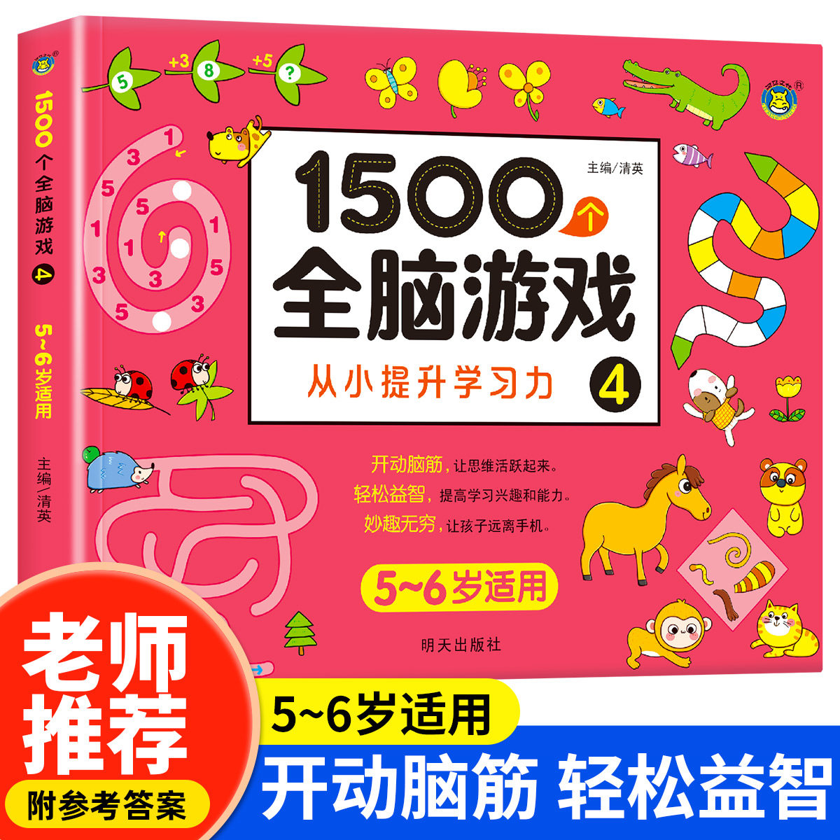 📚 【5-6岁】1500全脑游戏从小提升学习力4 左右脑智力开发动脑思维训练益智书籍 注意力观察力走迷宫空间游戏图画书幼儿园小班教材