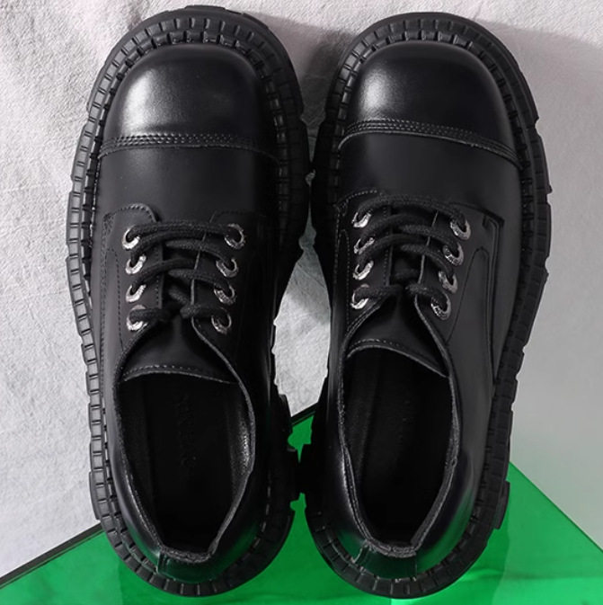 📚 西班牙潮牌男鞋潮真皮朋克风大头松糕鞋坦克增高厚底鞋矮子乐机车
