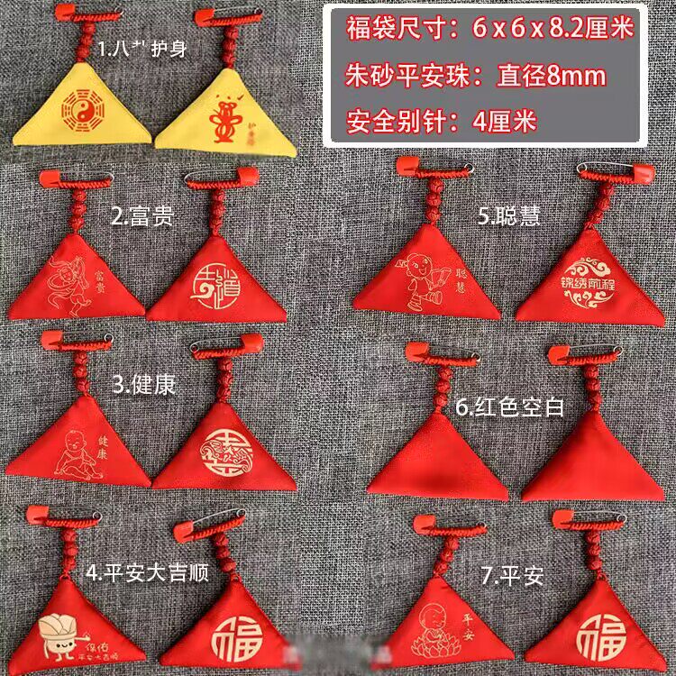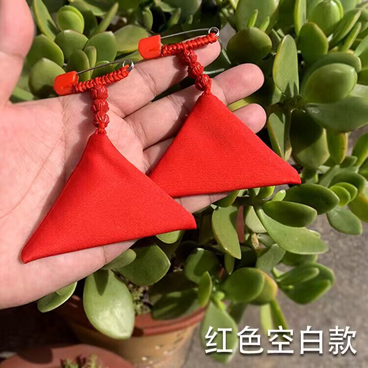📚 三角形福袋红色空白无字款护身福袋挂绳别针胎毛刺绣袋锦囊空袋