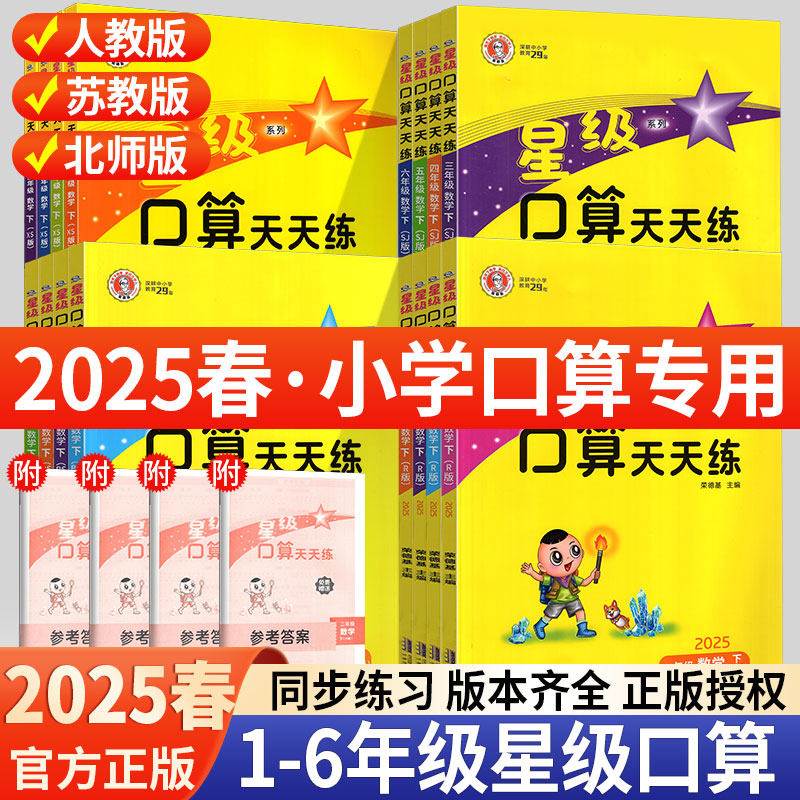 📚 2025新星级口算天天练一二三四五六年级上册下册人教版北师西师版北京版 荣德基小学6年级数学同步口算速算天天练习册口算大通关