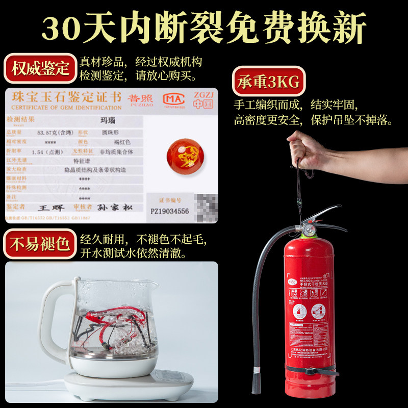 📚 十二生肖马年本命年红绳吊坠挂绳玛瑙玉石玉佩翡翠绳子编织项链绳