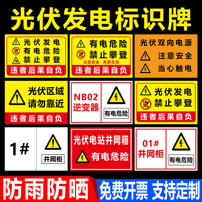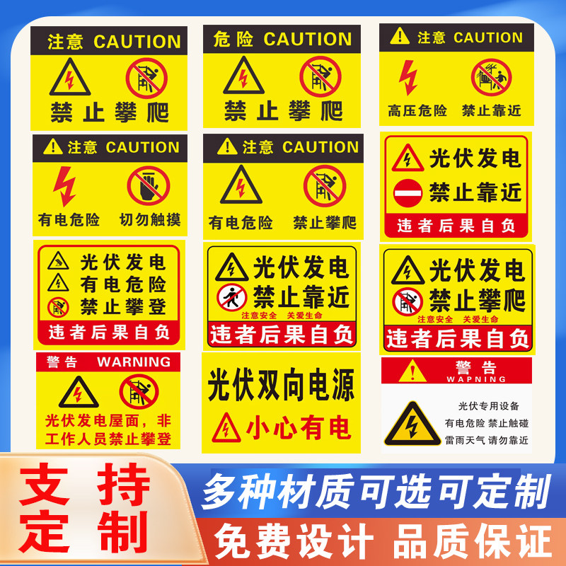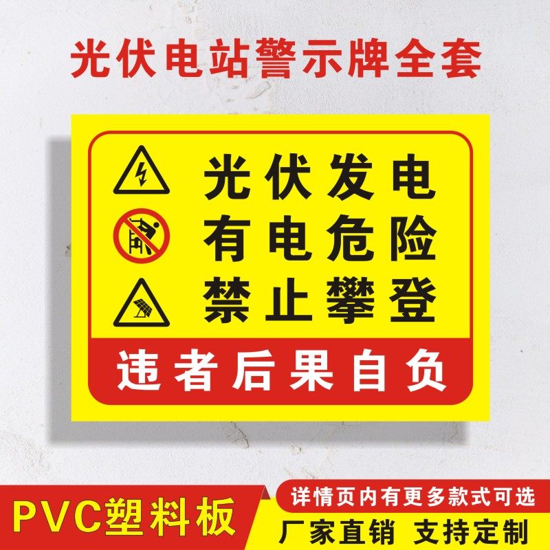 📚 光伏发电区域安全警示标识牌逆变器光伏板并网柜工地施工有电危险禁止攀爬请勿靠近当心触电标示标语提示定制