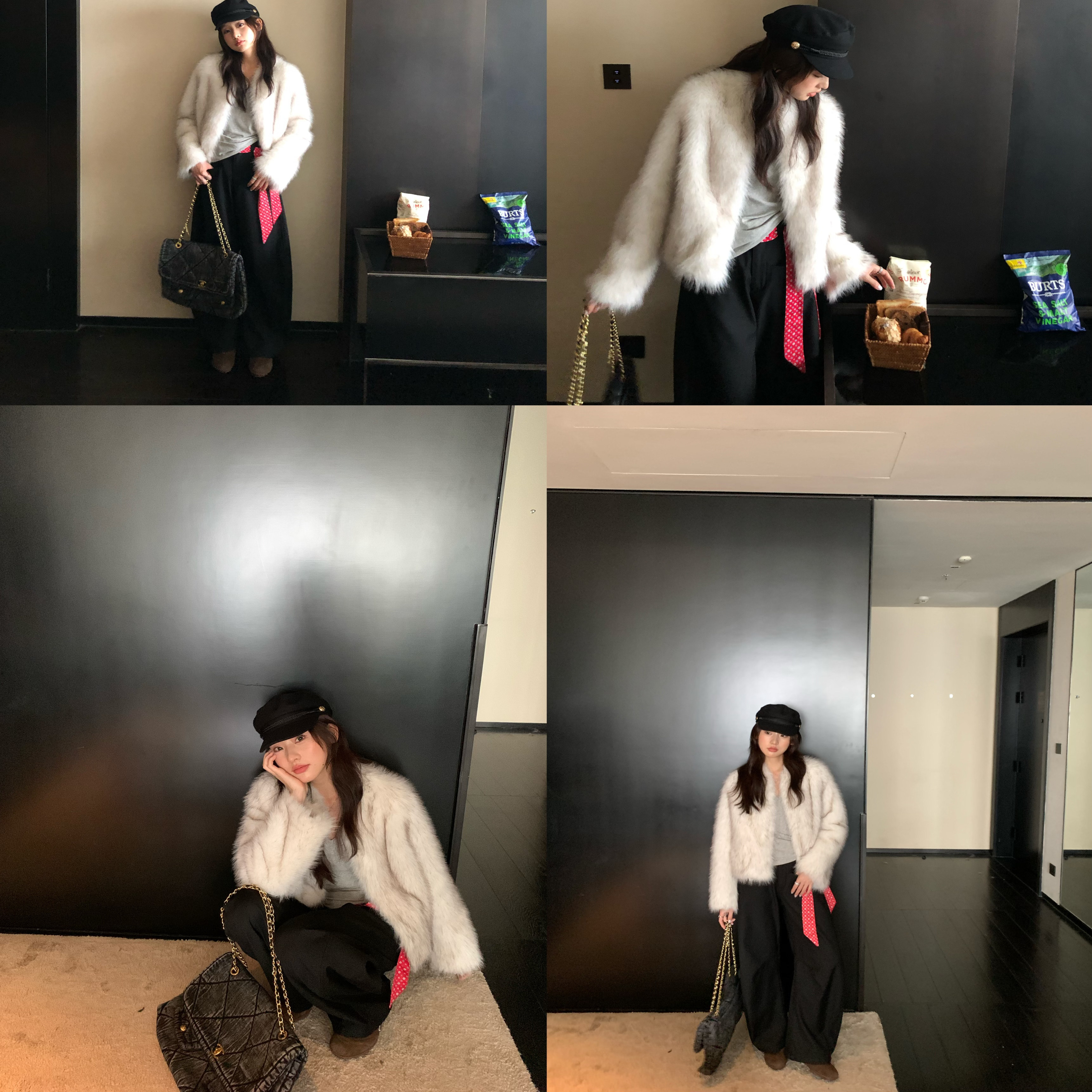 📚 衫韵顽童同款柔光香槟仿狐狸毛环保皮草大衣冬季女毛毛外套短款