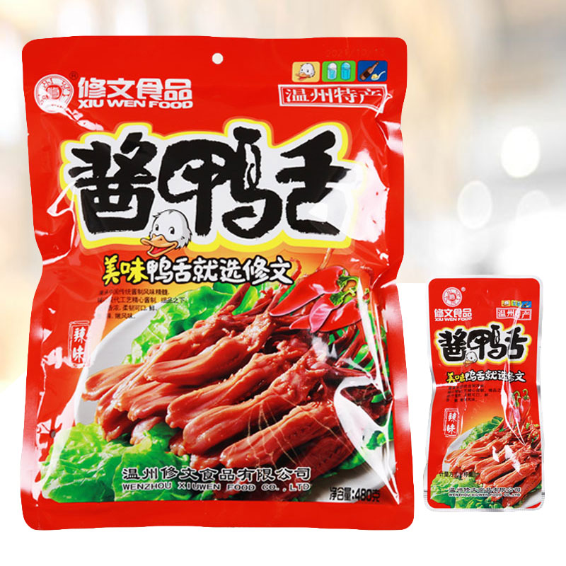 📚 修文鸭舌酱香即食零食鸭货休闲装小包装净重480克毛重550克温州