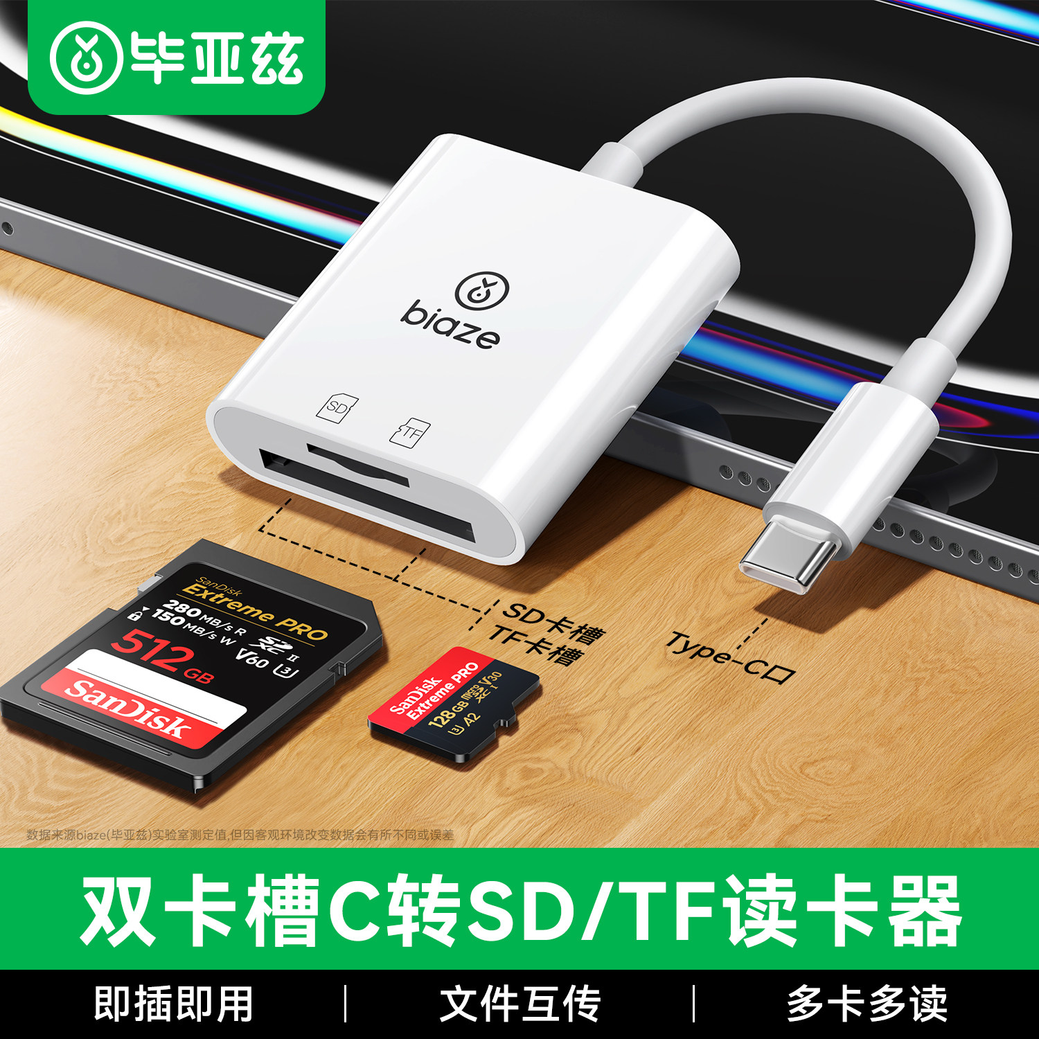 📚 biaze相机读卡器sd卡适用苹果手机lightning接口iphone15转换器tf卡佳能连接内存卡外置typec专用otg转接头