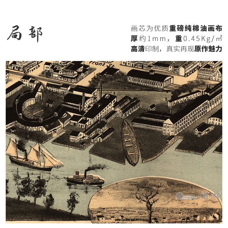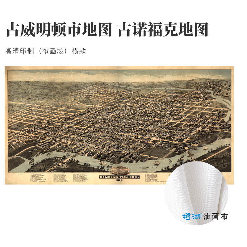 📚 古威明顿市诺福克地图纯棉油布画芯英文餐厅客厅书房美式装饰画