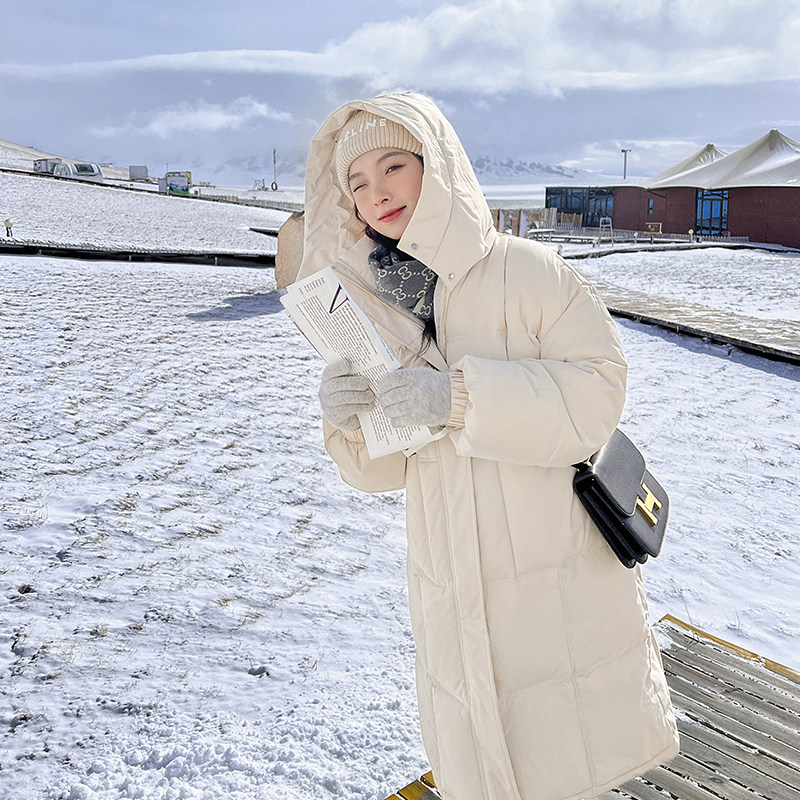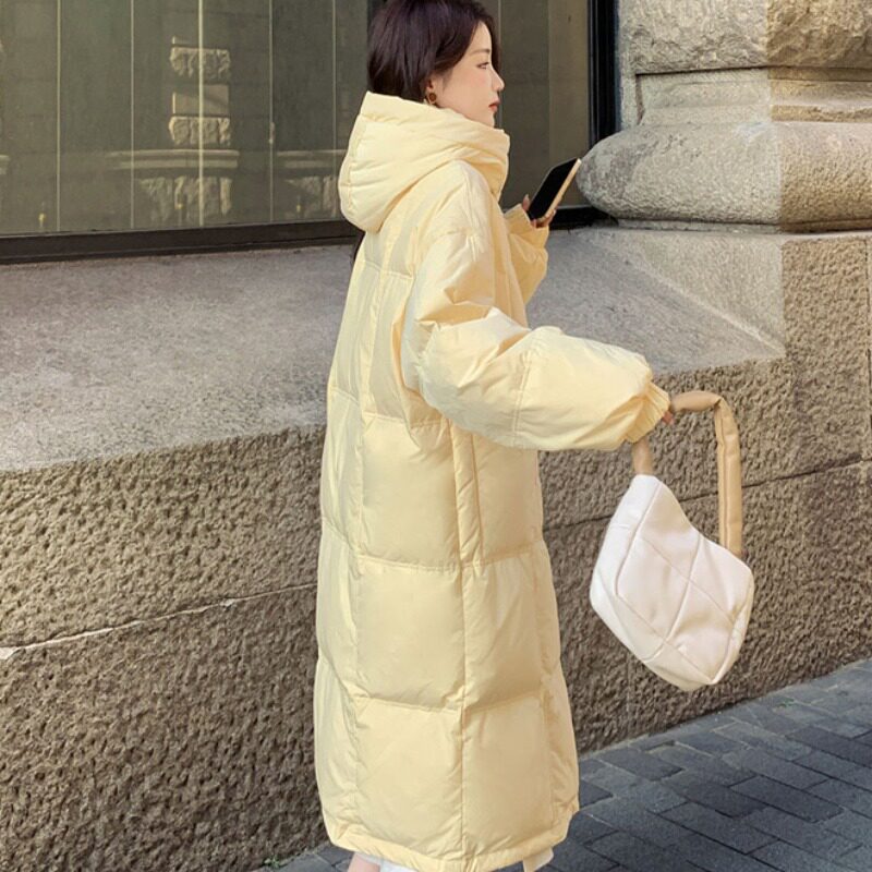 📚 奶fufu淡黄色羽绒服女中长款2025冬季新款连帽加厚过膝小个子外套