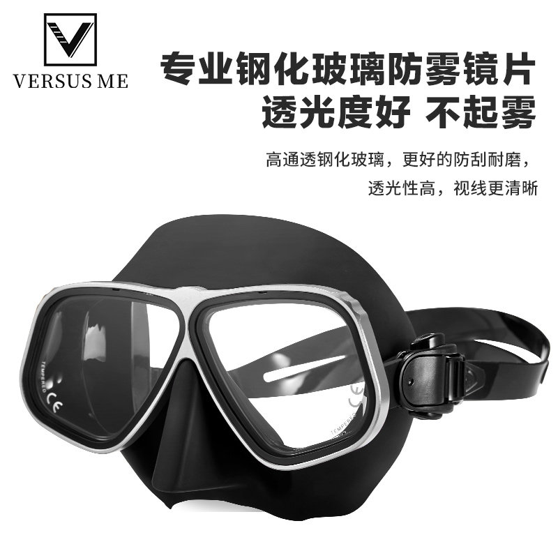 📚 专业自由潜水镜男女钢化玻璃防雾防水高清潜水镜可配近视度数面镜