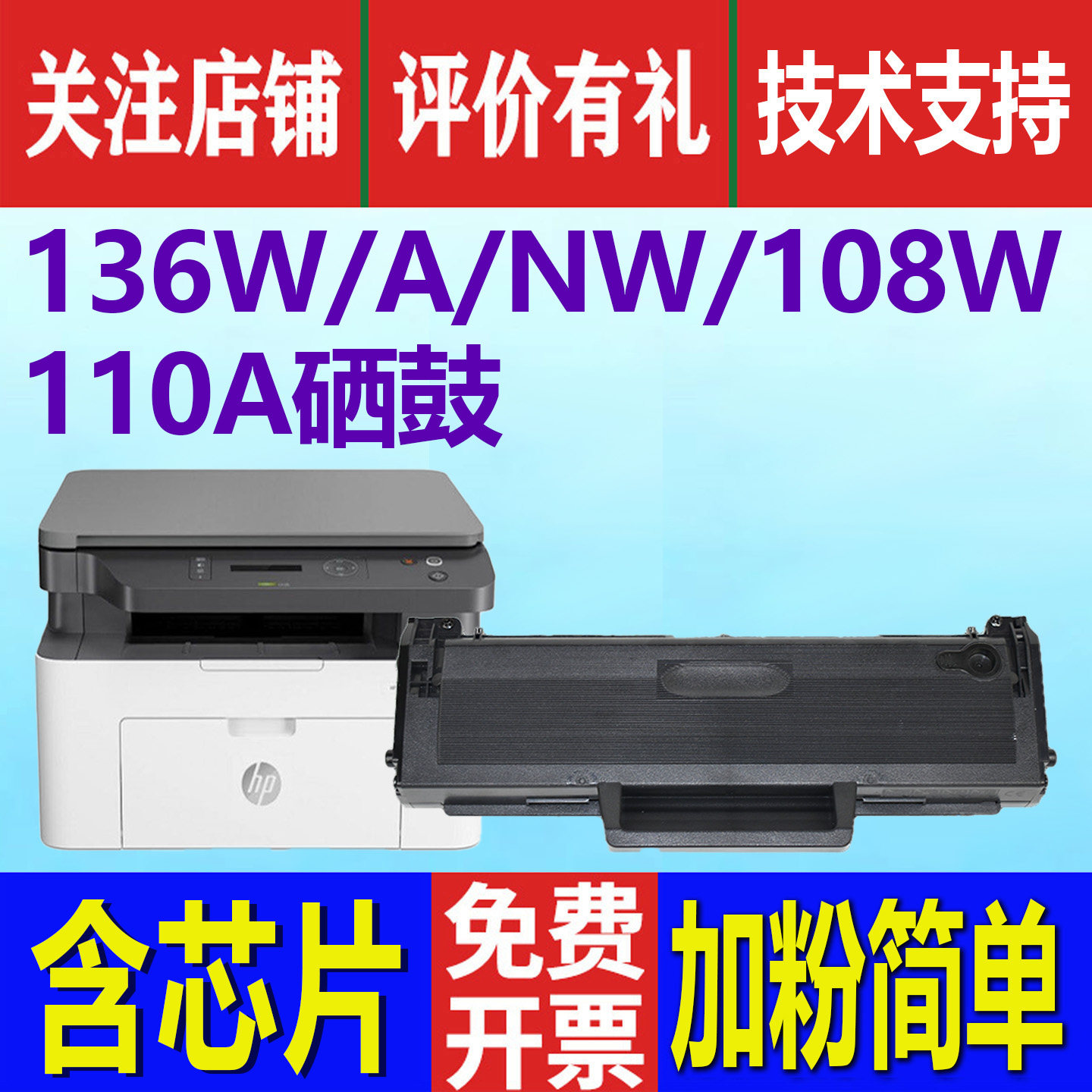 📚 适用惠普136w硒鼓136nw 108w/a 138w/p hp lasermfp黑白打印机墨粉晒鼓耗材w1110a碳粉盒136wm 136a 110a墨盒