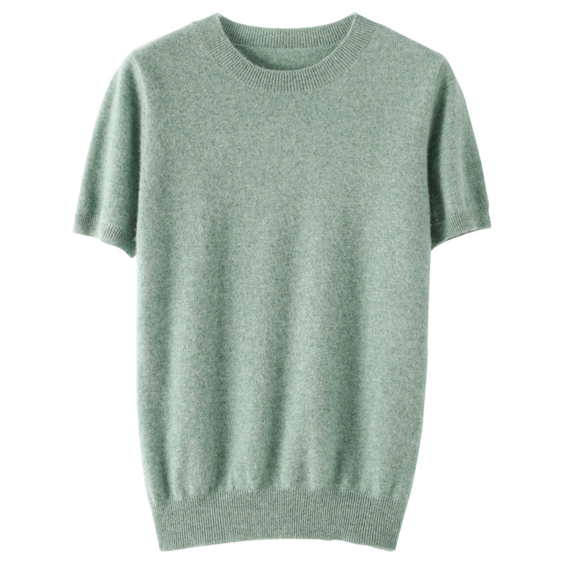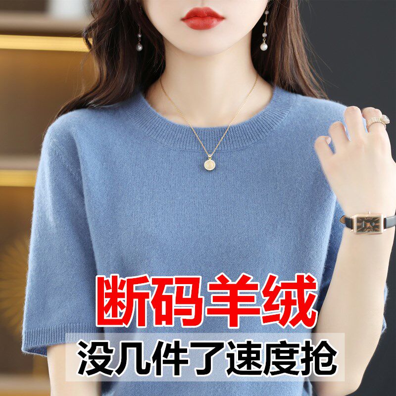 📚 羊毛衫女圆领短袖羊绒衫春秋新款毛衣薄款夏季半袖宽松打底针织衫