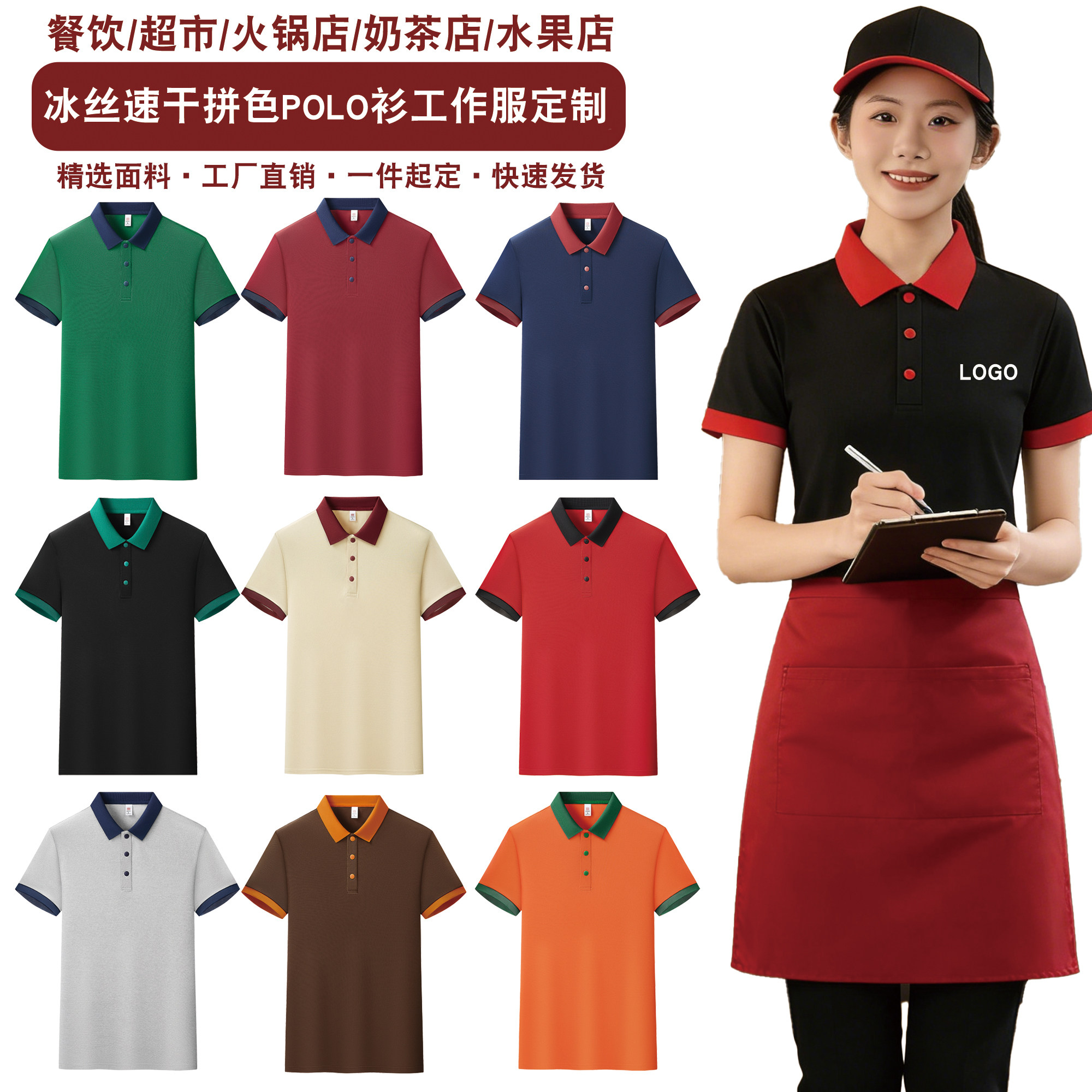 📚 餐饮服务员工作服短袖夏季定制POLO衫餐厅火锅奶茶店饭店工装t恤