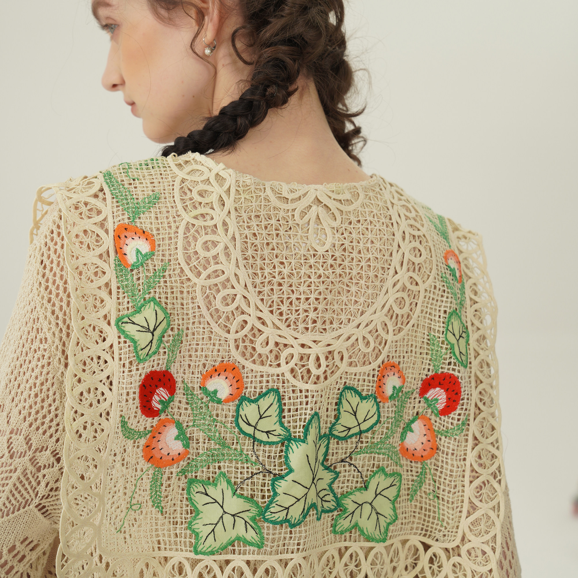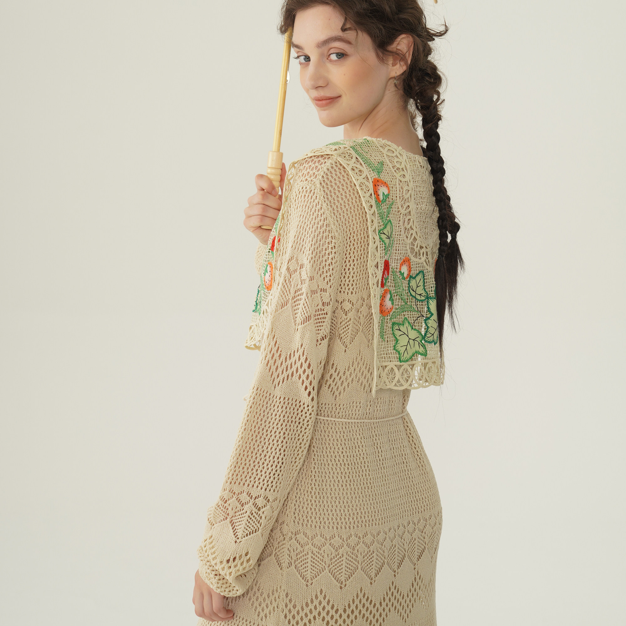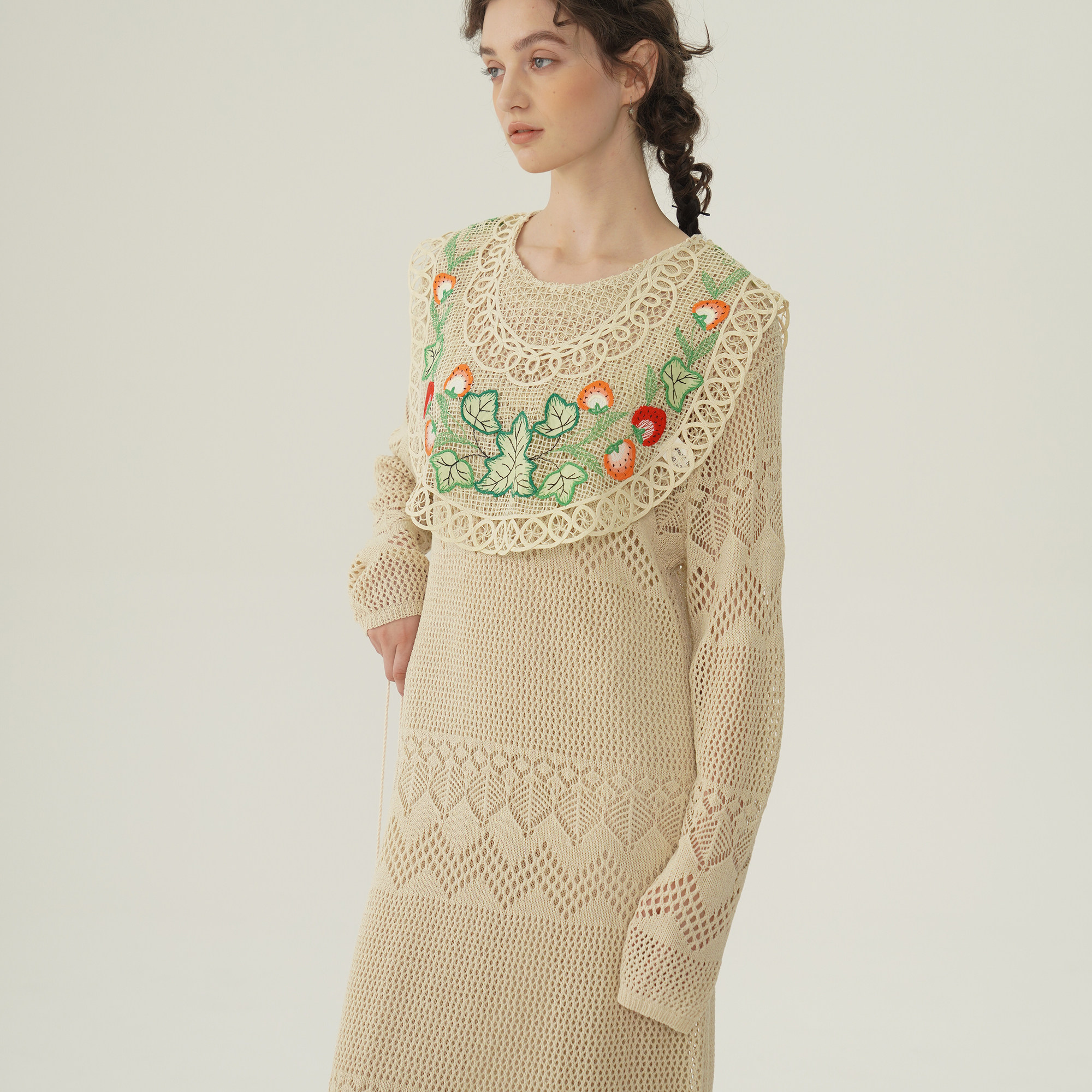 📚 脸儿艺 vintage设计 镂空刺绣 复古大海军领 针织垂感 长款连衣裙