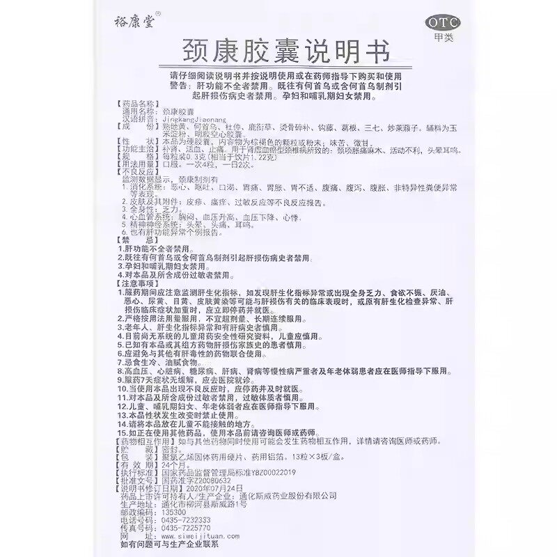 📚 [裕康堂] 颈康胶囊 39粒/盒 肾虚血瘀型颈椎病所致的颈项胀痛麻木