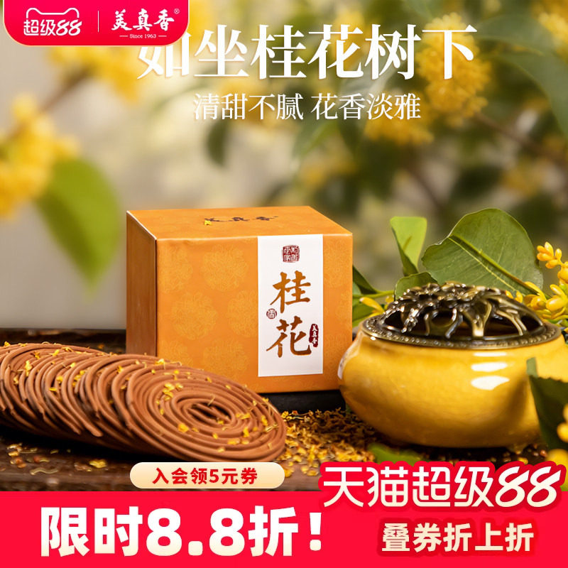📚 美真香天然檀香沉香盘香助熏香室内家用龙涎桂花艾草驱蚊睡眠香薰