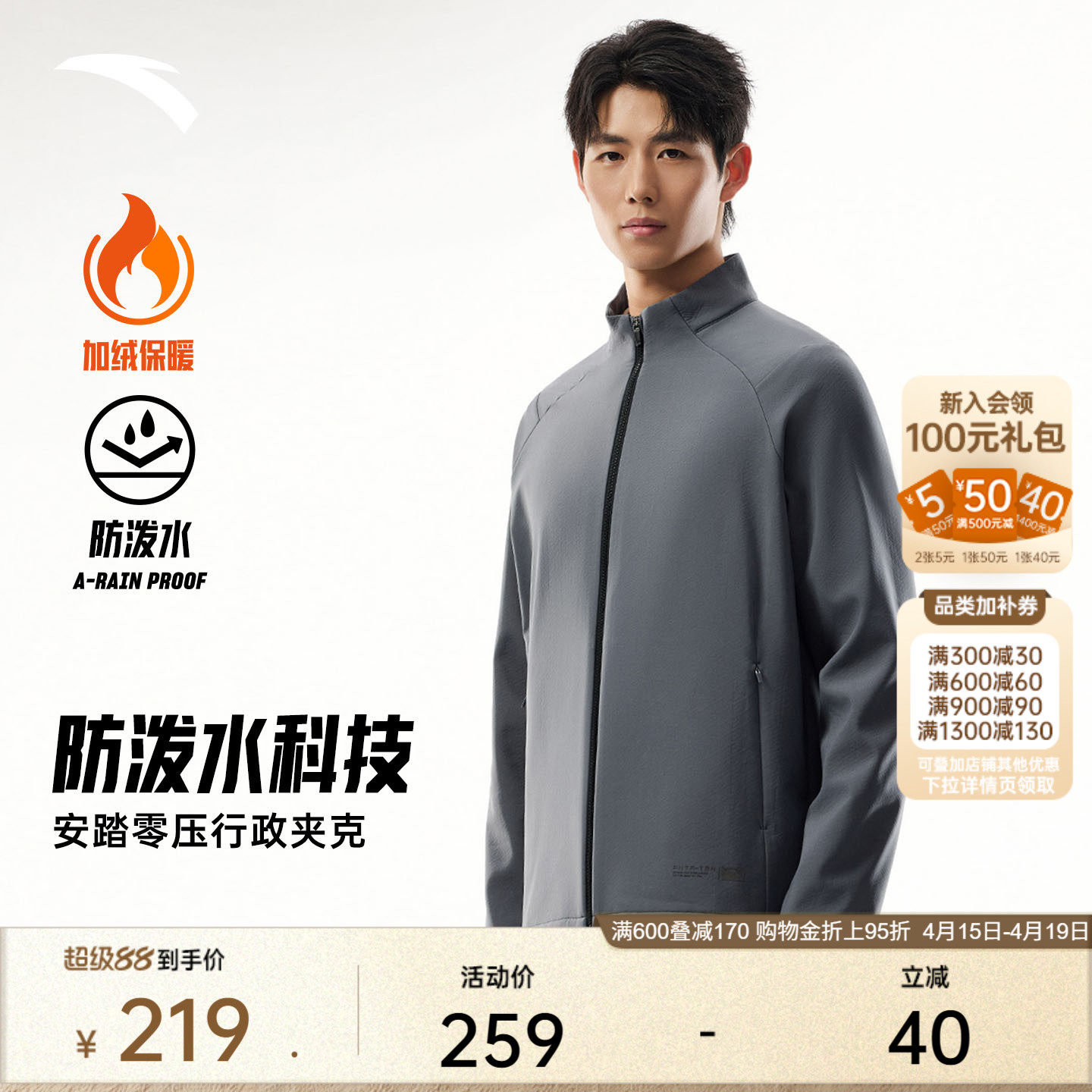📚 安踏零压型壳丨防泼水运动外套男士冬季加绒保暖立领行政夹克上衣