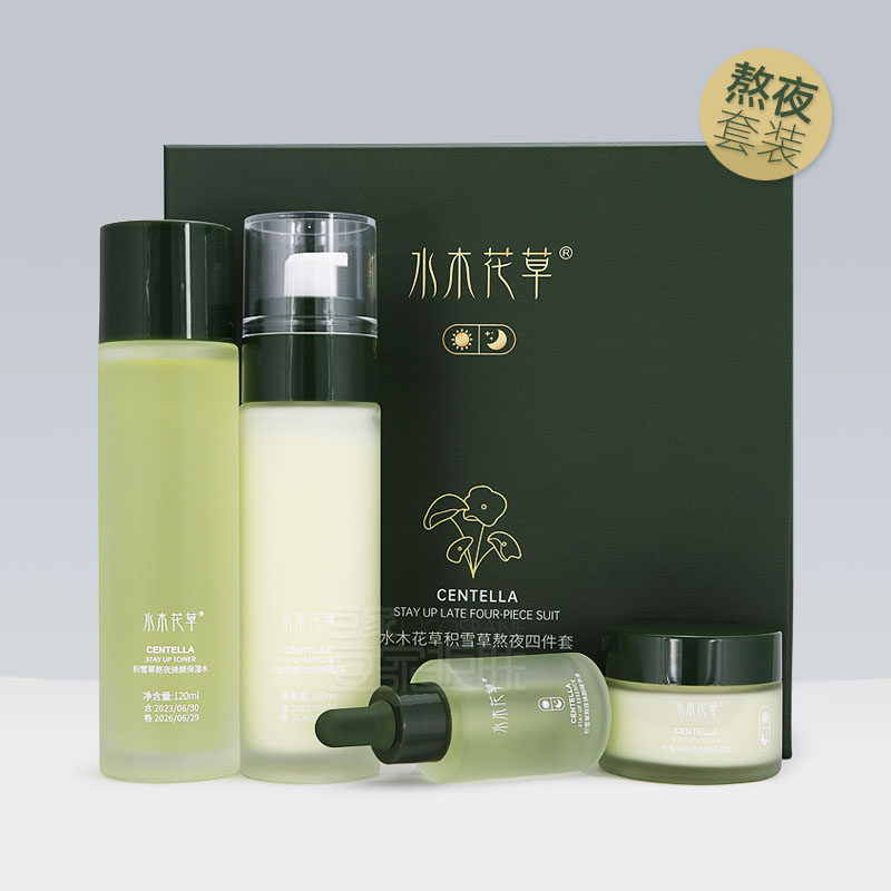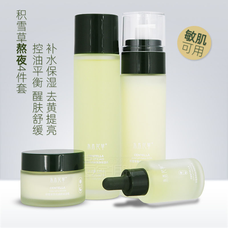 📚 水木花草积雪草熬夜水乳四件套补水保湿控油豆痘舒缓面部护肤套装