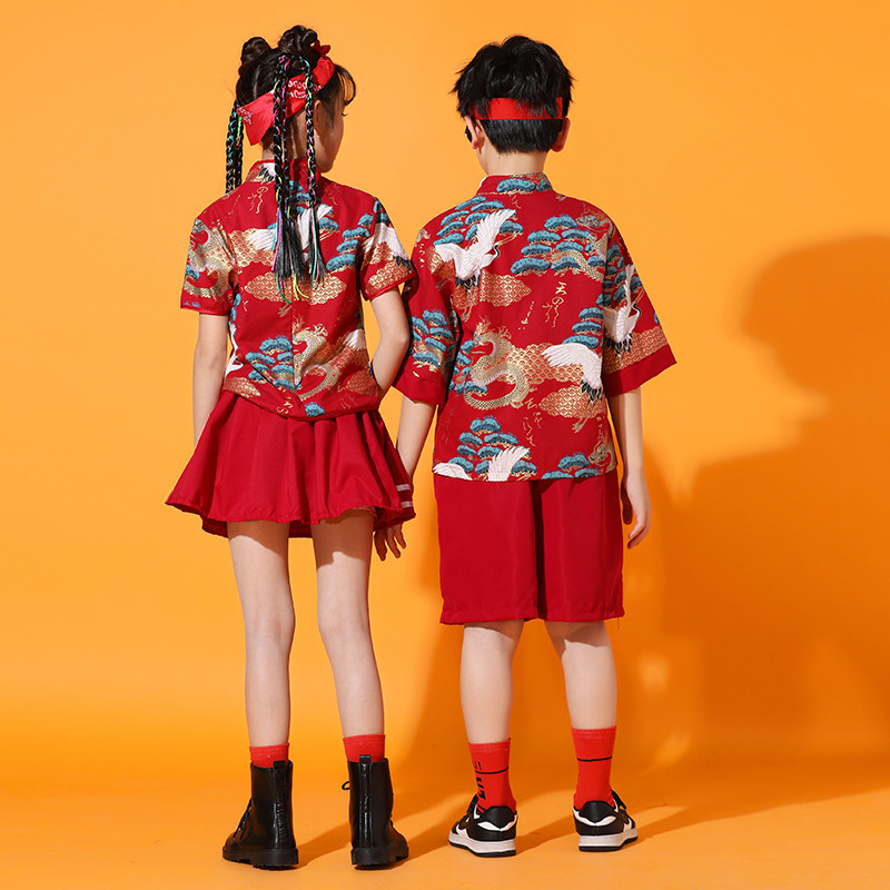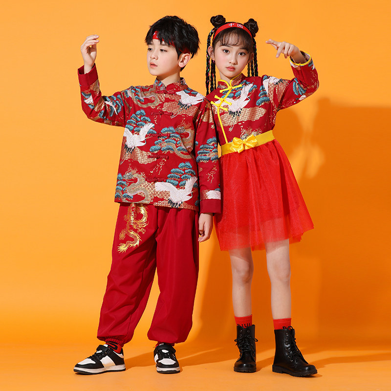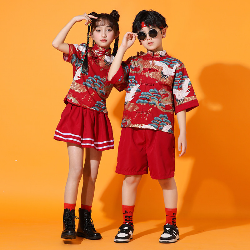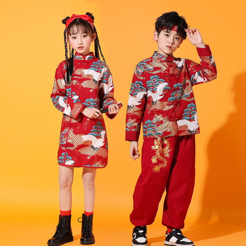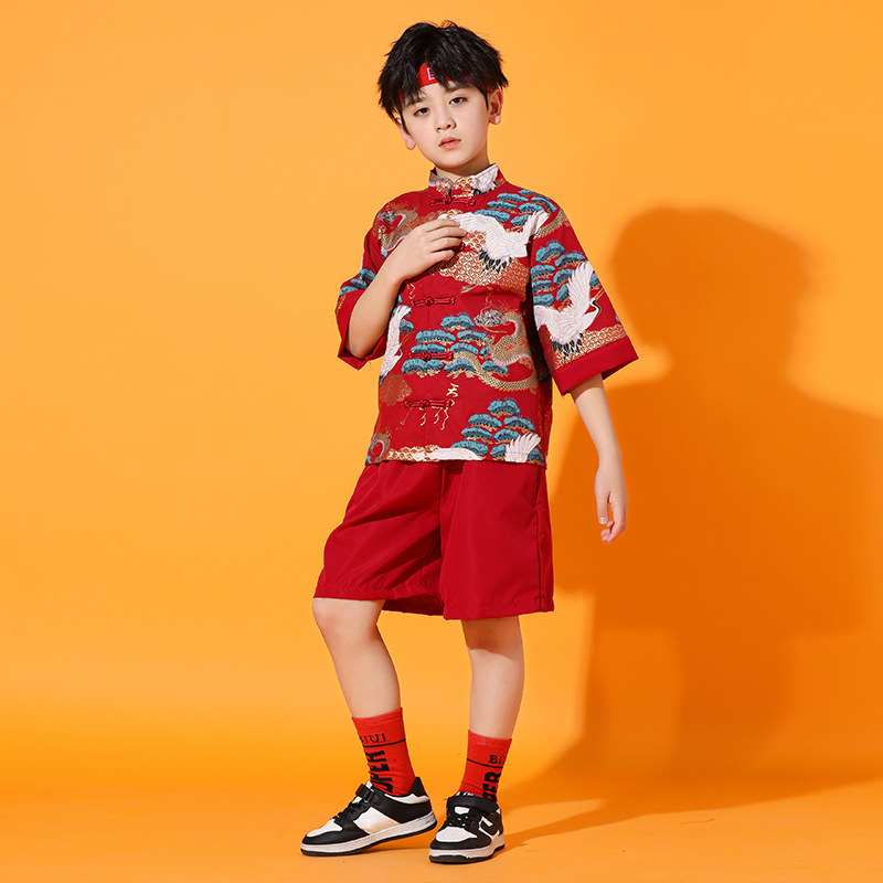 📚 六一儿童啦啦队演出服中国风国潮新中式男童唐装街舞儿童潮服男童