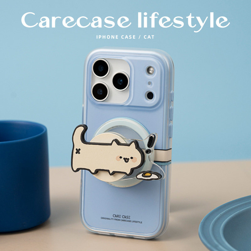 📚 CARECASE 好奇觅食猫咪二合一磁吸手机壳 适用于苹果iPhone17 16 15 14 Pro Max 原创设计 可爱 磁吸支架组合