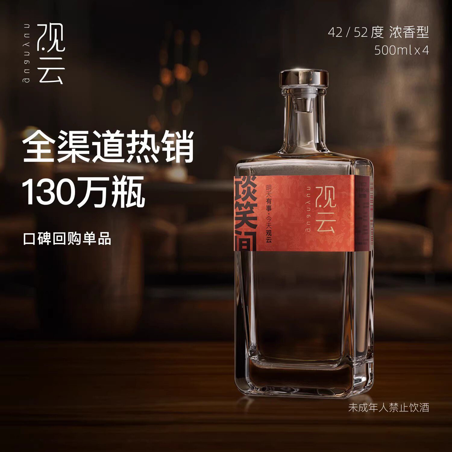 📚 观云红标谈笑间42/52度浓香500ml*4纯粮酒高档白酒整箱礼盒送长辈