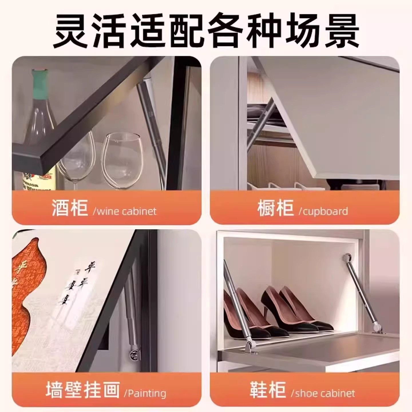 📚 液压支撑杆上翻门橱柜气撑杆玻璃门随意停下翻门伸缩气弹簧支撑杆