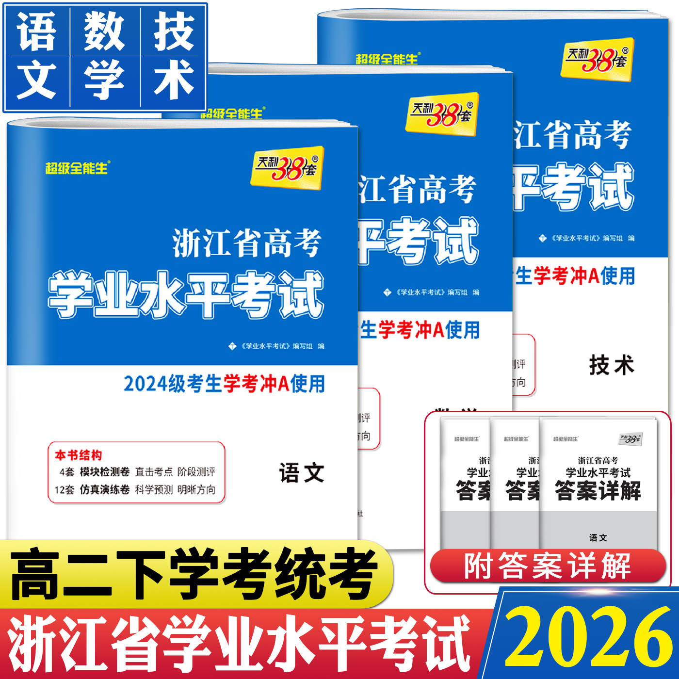 📚 浙江学考数学技术语文2026天利38套浙江省新高考学业水平考试卷语文数学技术 7月高中学业水平测试历年真题卷高二下学考模拟卷汇编