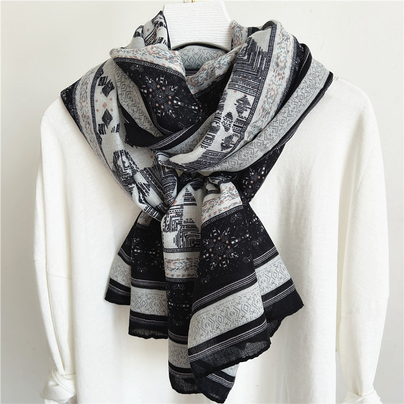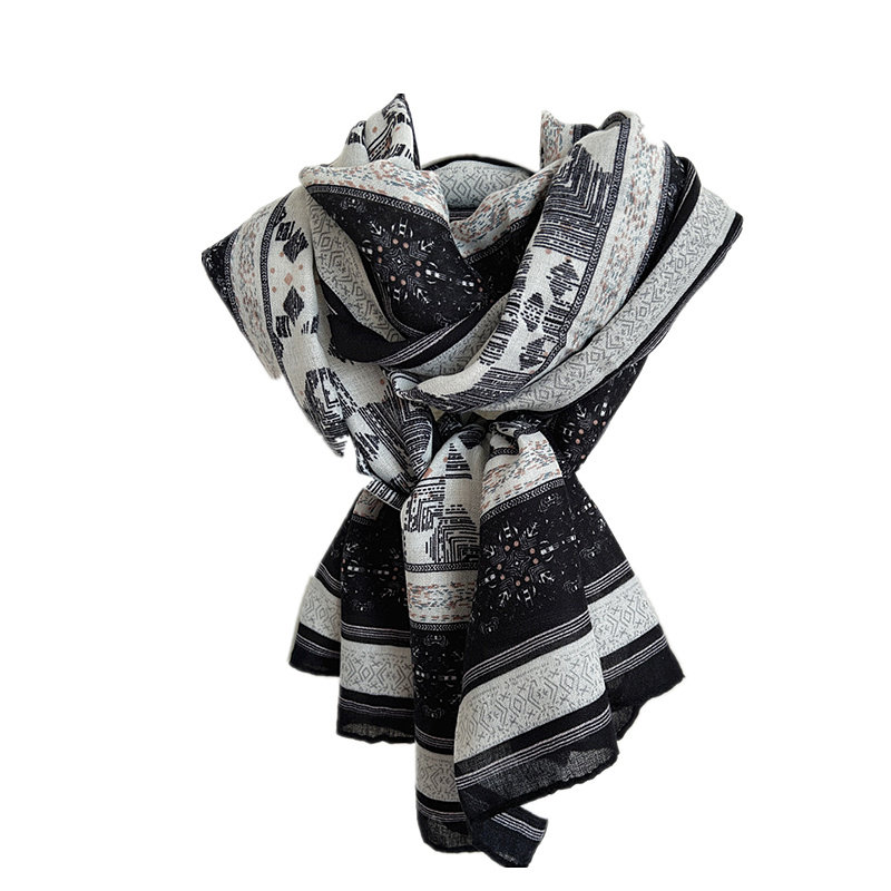 📚 围巾女冬季新款春秋棉麻丝巾薄款波西米亚长款旅行披肩洋气纱巾