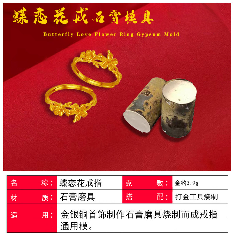 📚 小红书蝶恋花戒指石膏模具金银铜首饰倒模制作开口女戒子打金工具
