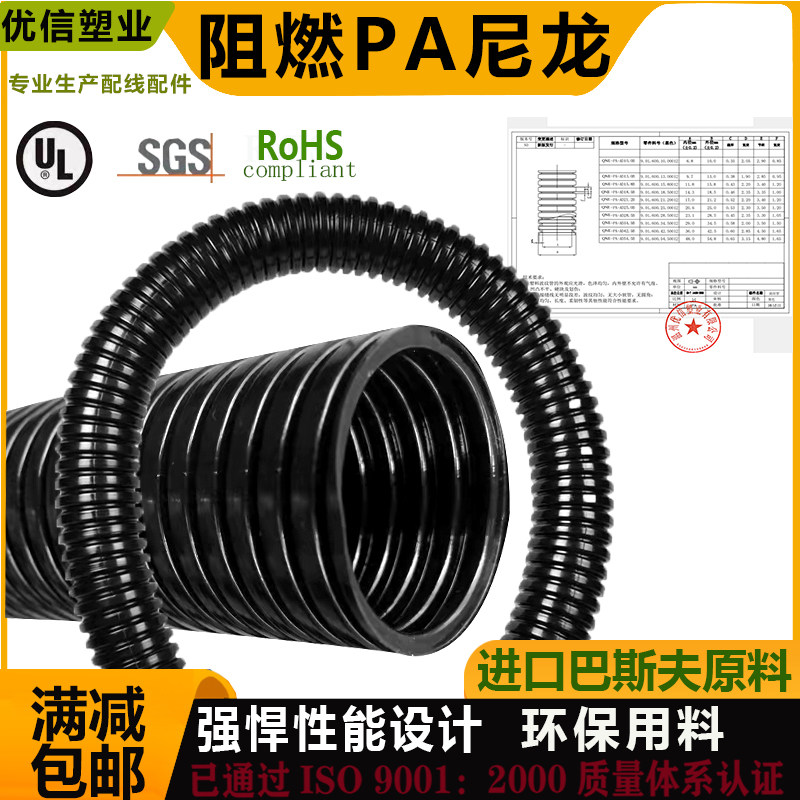 📚 高档PA66尼龙阻燃波纹管防火抗紫外线AD21.2耐磨室外电缆电线软管