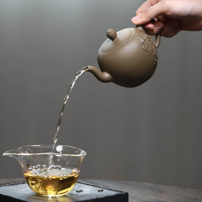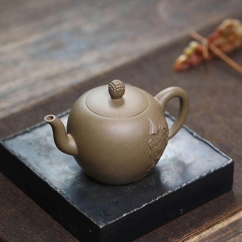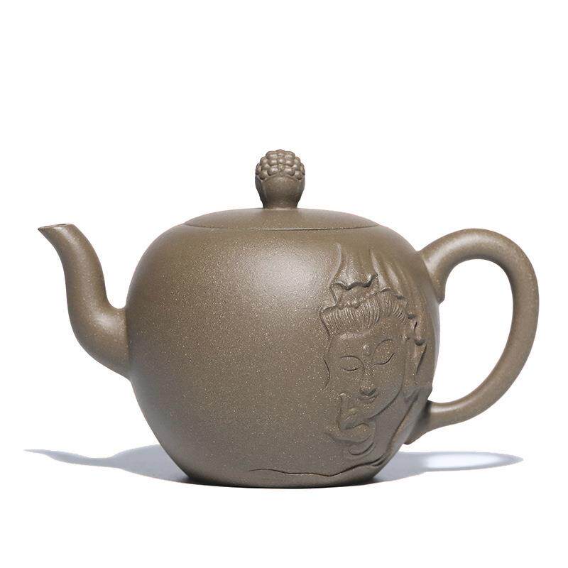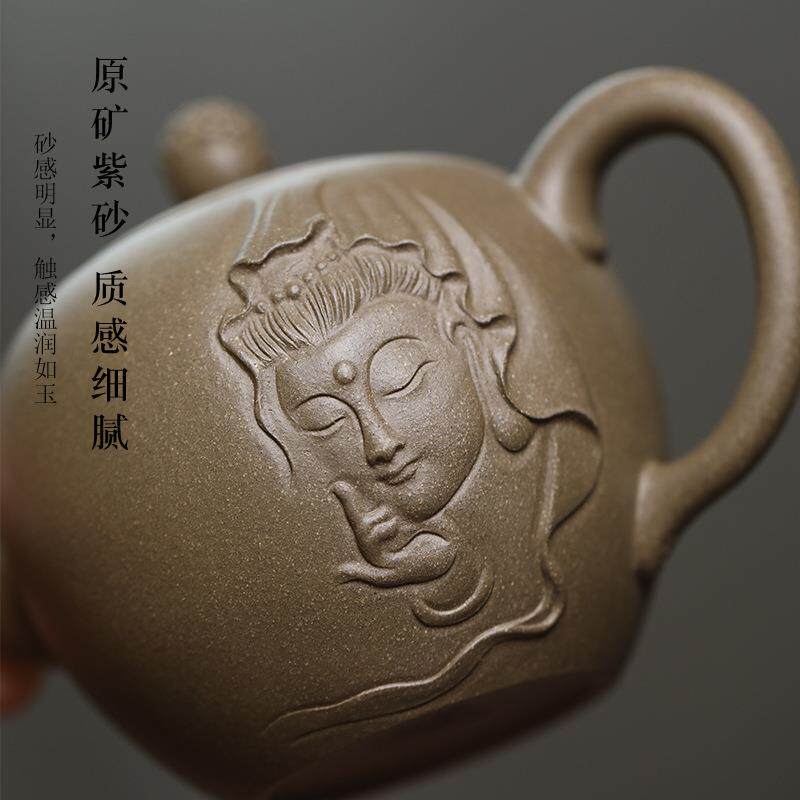 📚 宜兴原矿青段泥茶具手工制作紫砂茶壶浮雕美人肩壶禅莲壶