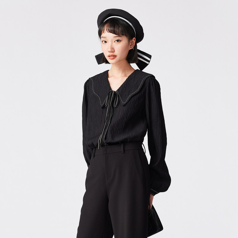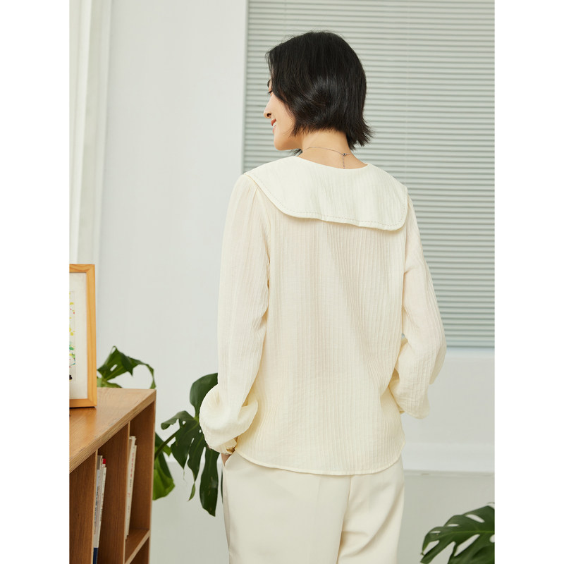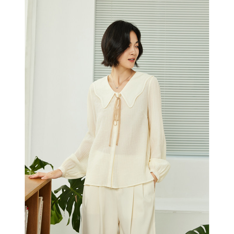 📚 古木夕羊气质宽松轻薄翻领长袖衬衫女秋季优雅减龄上衣GS35008008