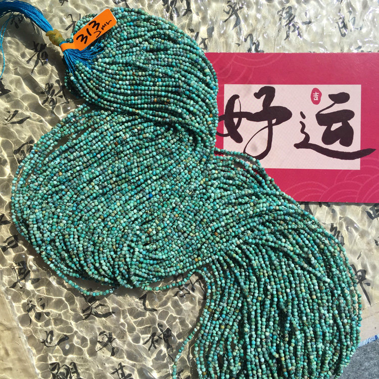 📚 Sweet裸石 天然原矿绿松石无忧化湖北松mini迷你小米珠半成品2mm