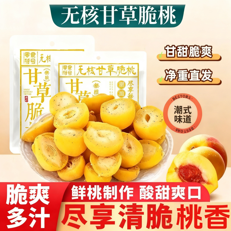 📚 潮汕甘草无核脆桃怀旧桃子酥脆清甜蜜饯锁喉脆桃童年小零食脆桃