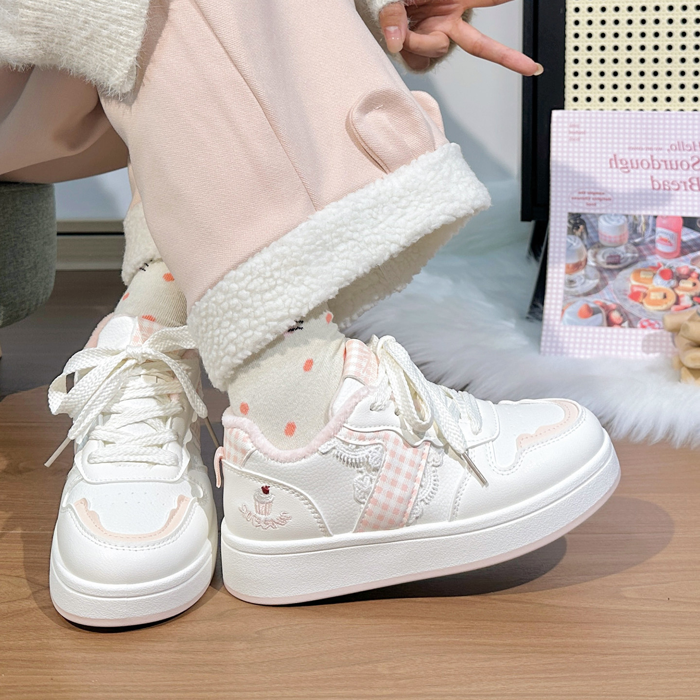 📚 回力冬季加绒小白鞋女2025新款厚度运动休闲鞋高级感厚底保暖板鞋