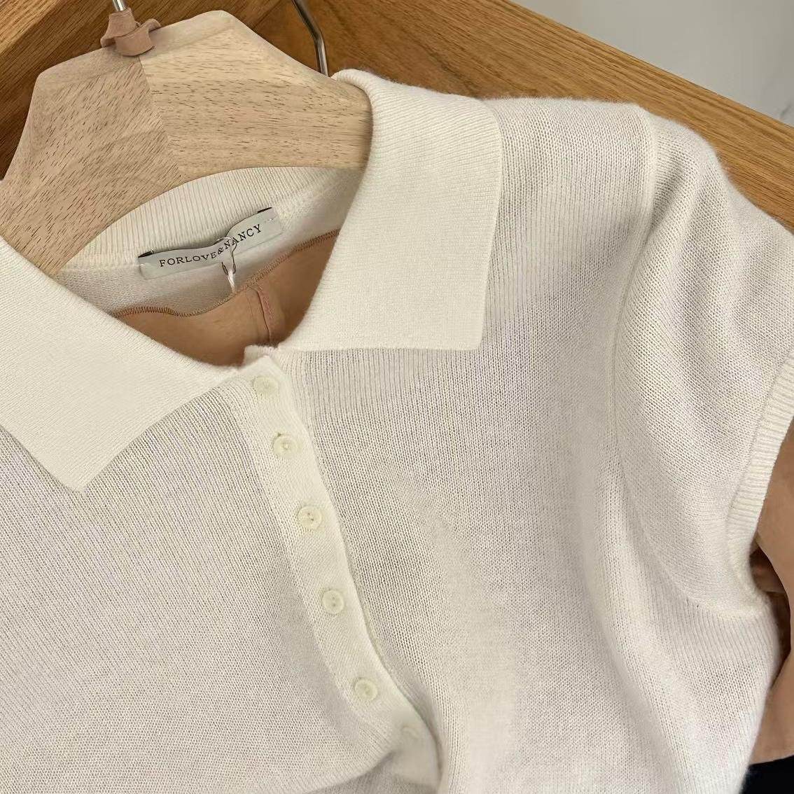 📚 FN爱与南希2025春新款通勤翻领纽扣羊毛舒适短袖套头针织衫女1665