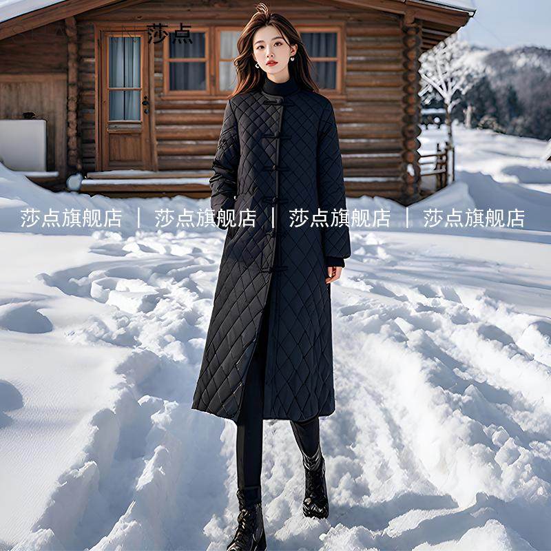 📚 黑色中长款棉服外套复古新中式国风盘扣时尚保暖棉衣显瘦赫本棉袄