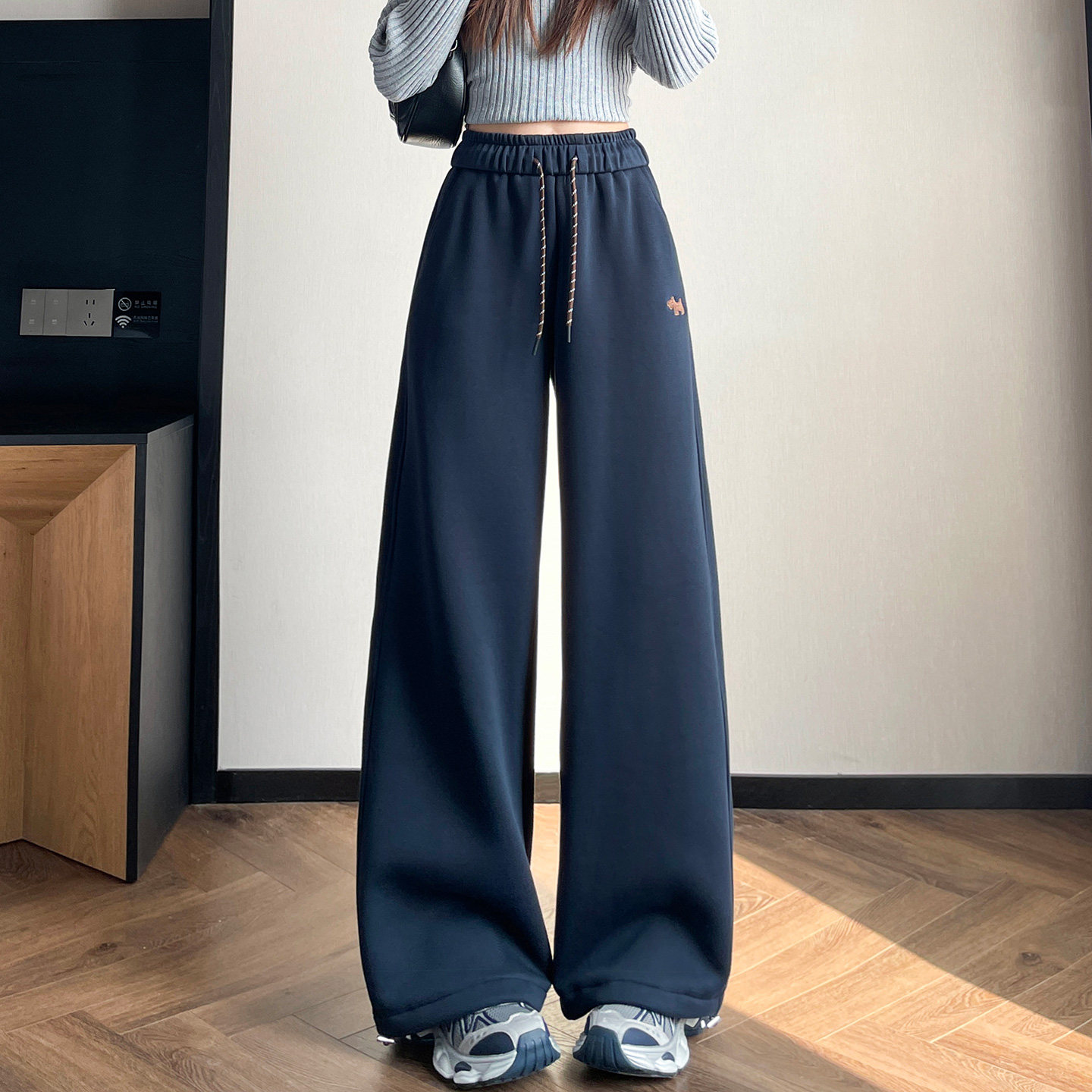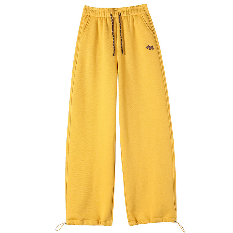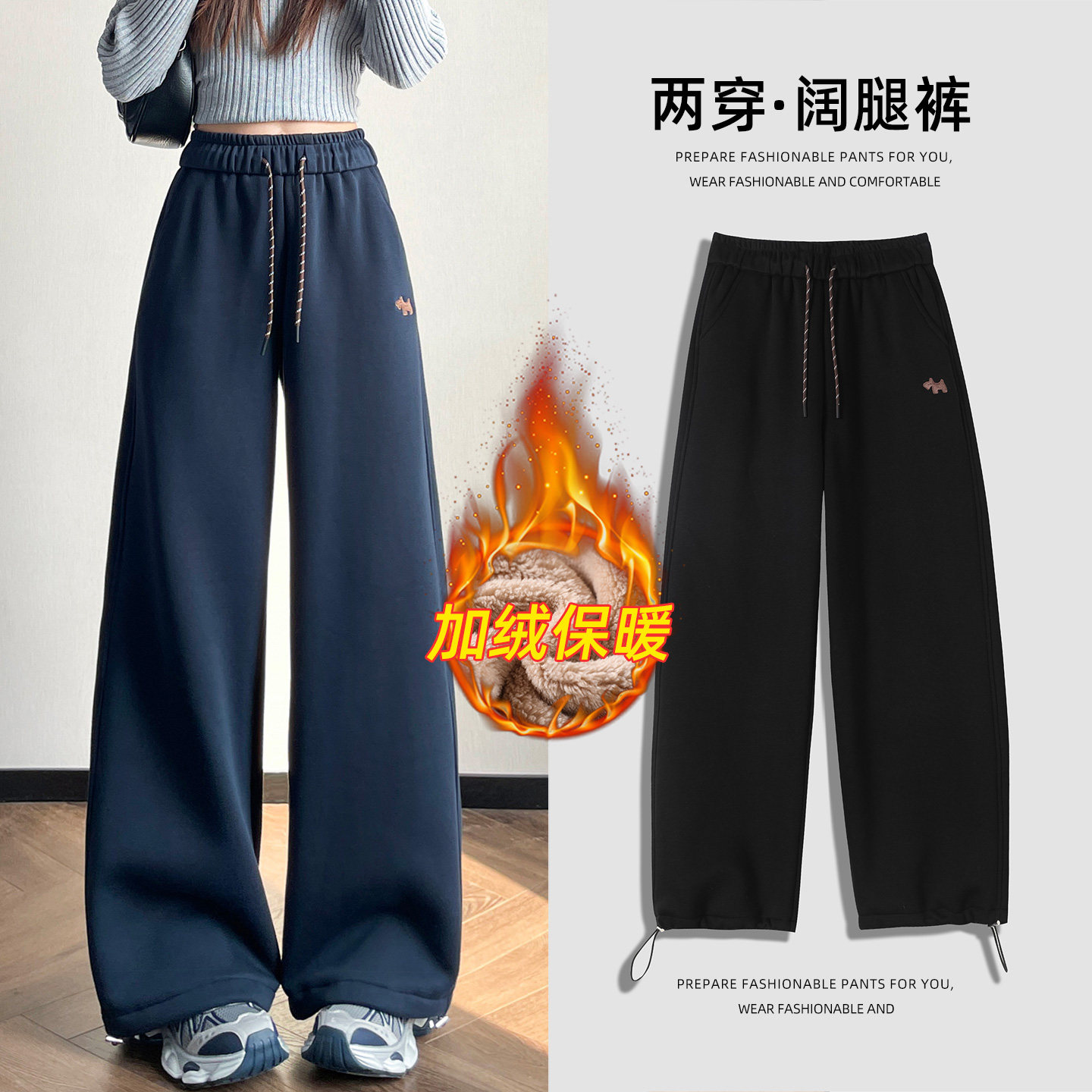 📚 高中初中女生弯刀休闲裤子羊羔绒超厚版大童秋冬加绒阔腿运动卫裤