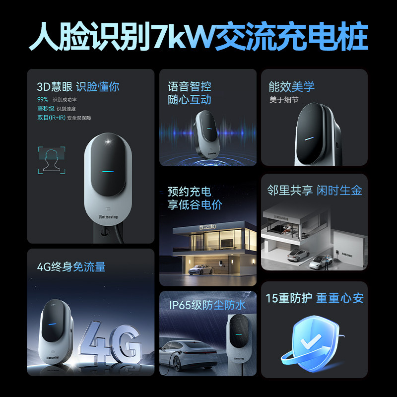 📚 能效充电桩家用7kW人脸识别天曜WE P7家充桩特斯拉问界汽车交流桩