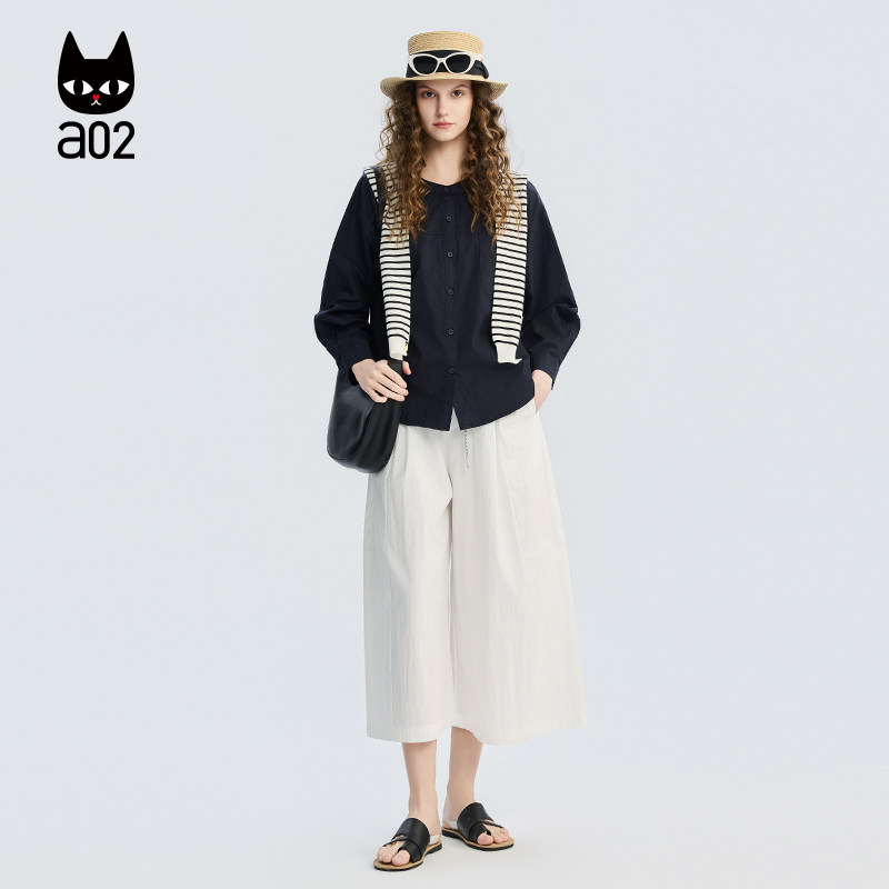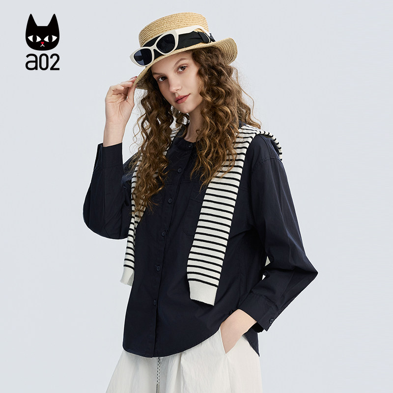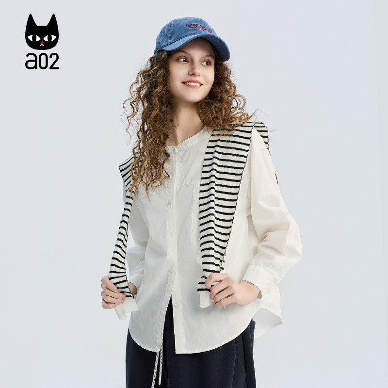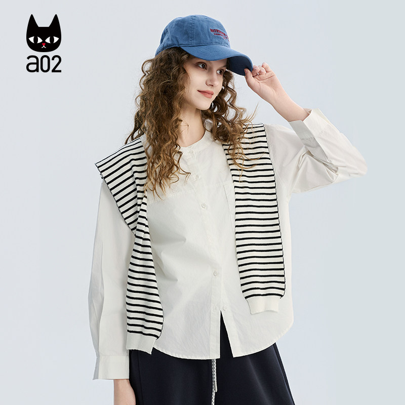 📚 a02宽松纯棉衬衫女款2026新款春秋条纹皮匠两件套春装衬衣外套