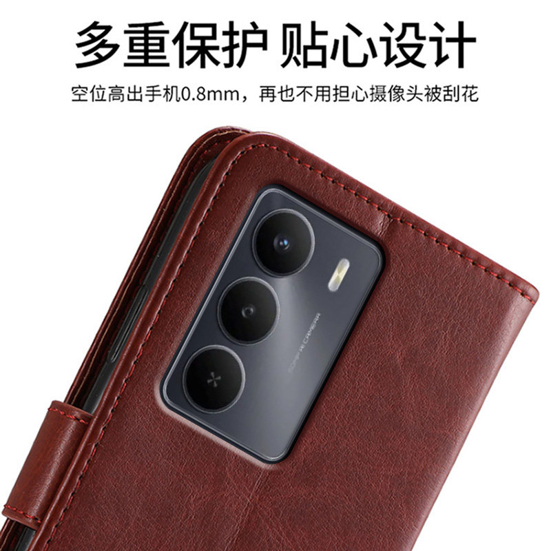 📚 适用于真我V70手机壳RMX3946支架商务全包防摔真我V60S软壳RMX3995真我V60翻盖插卡防摔保护皮套男女新款老人